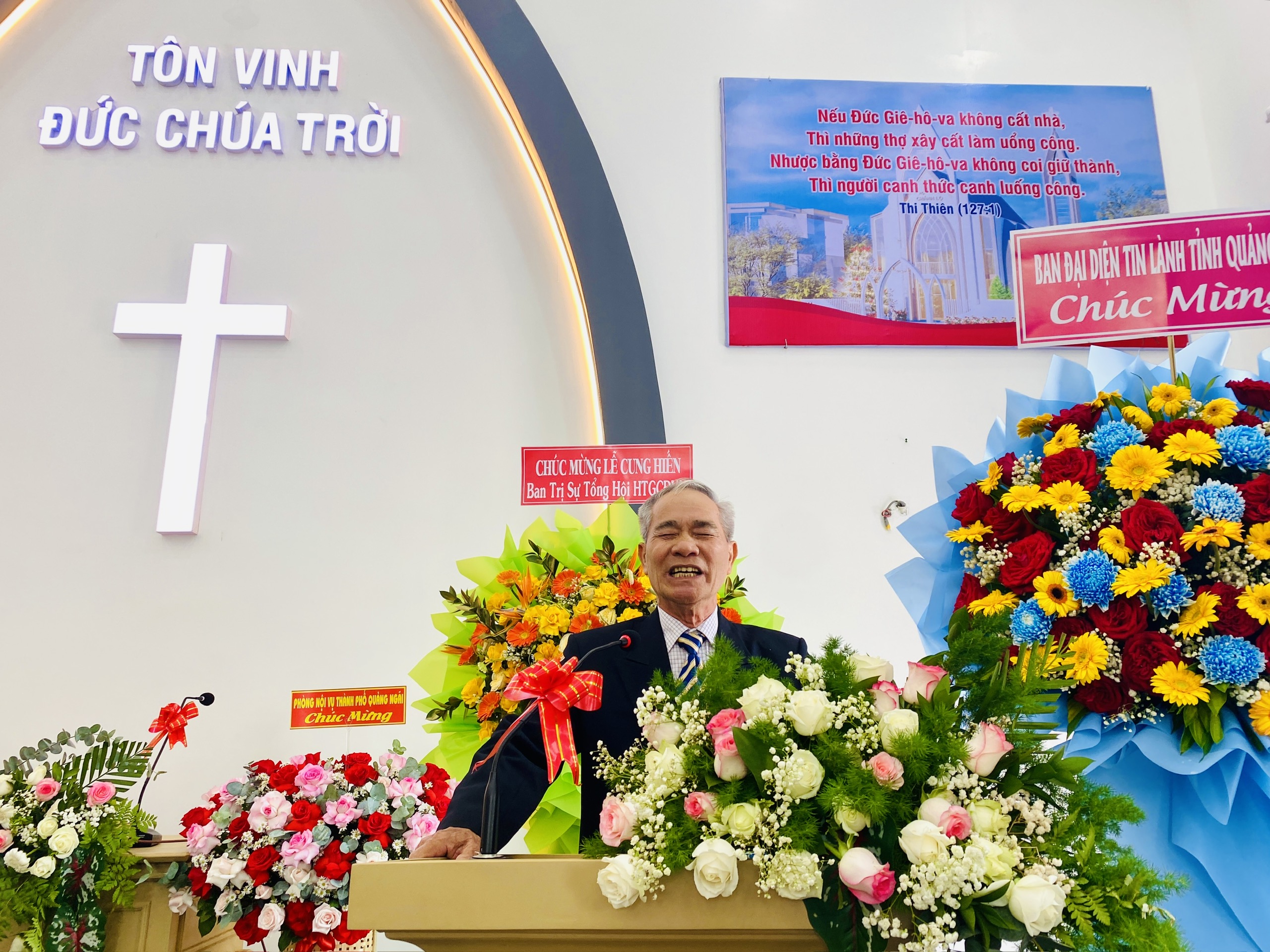 Mục sư Huỳnh Lý Hải, Quản nhiệm Hội thánh Chánh Lộ bày tỏ lòng tri ân đến quý Mục sư, quan khách tham dự và ân nhân
