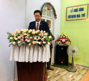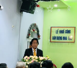 Mục sư Huỳnh Lý Hải (P.HT 1, QNHT) thực hiện nghi thức lễ khởi công