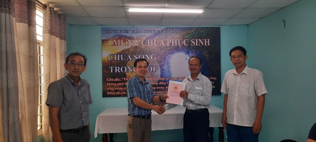 Cũng trong dịp này Mục sư Nguyễn Lập Đông đại diện Hội Thánh Cẩm Nam gởi dâng hiến giấy tờ sổ đỏ của Hội Thánh cho Tổng Hội, đại diện Ủy Ban Tài Sản Mục sư A Héo Trưởng Ủy Ban tiếp nhận.