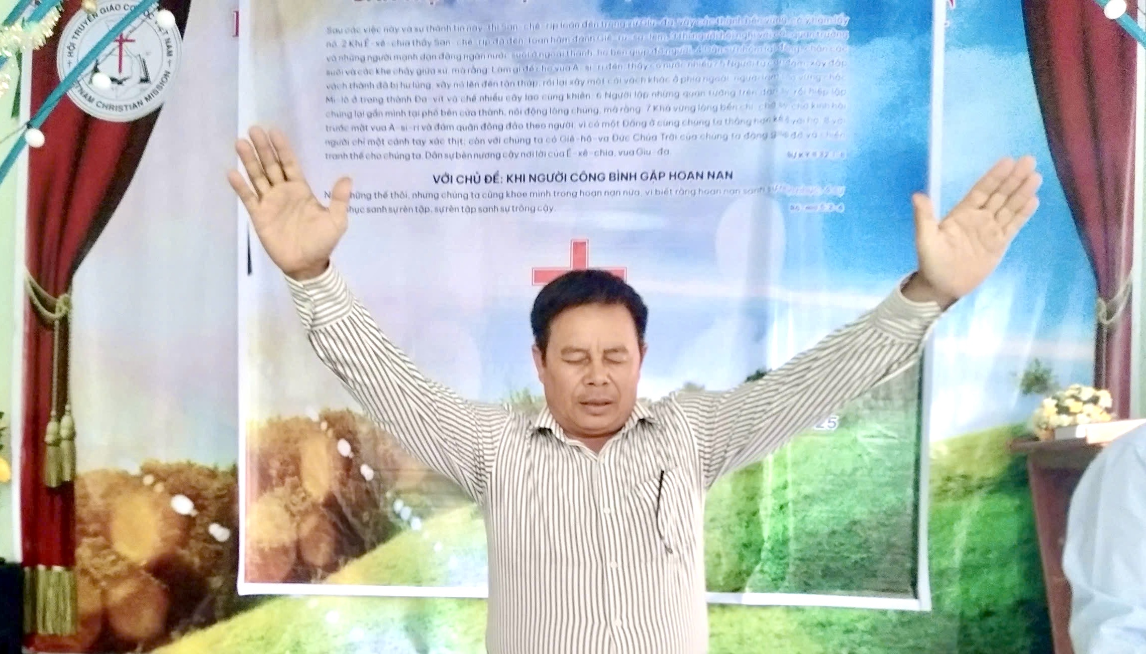 Mục sư A Kum cầu nguyện dâng buổi Hiệp nguyện lên cho Đức Chúa Trời Ba Ngôi