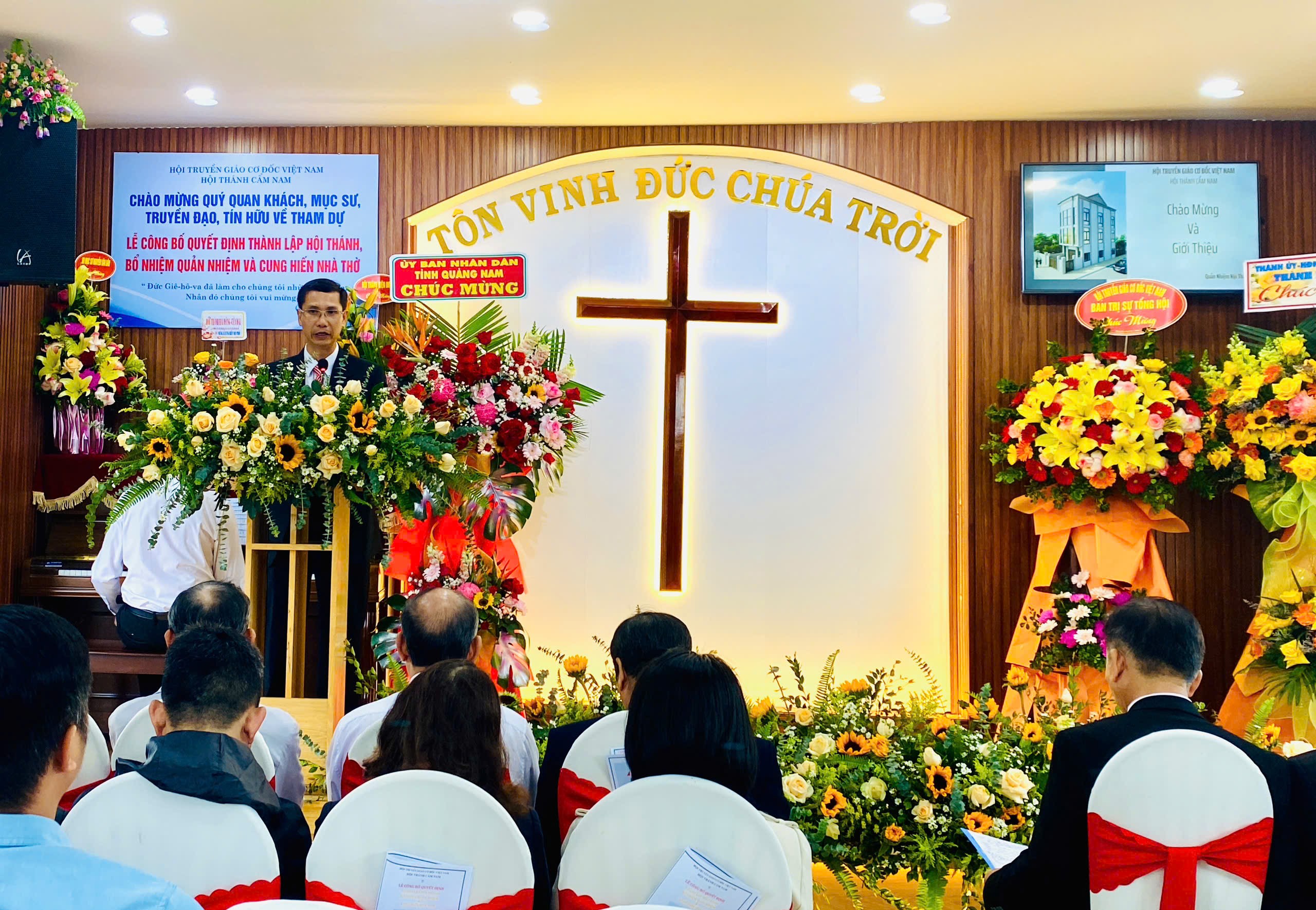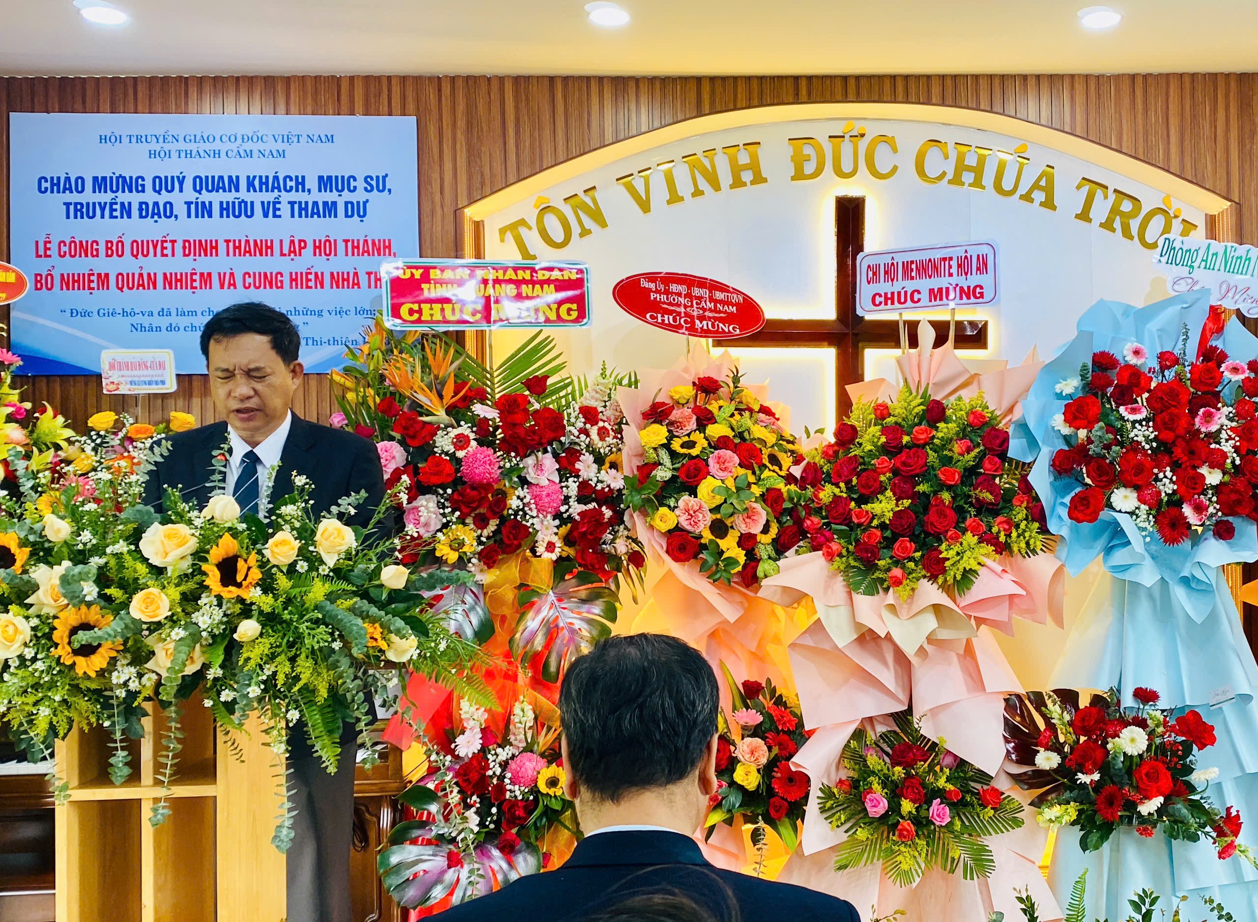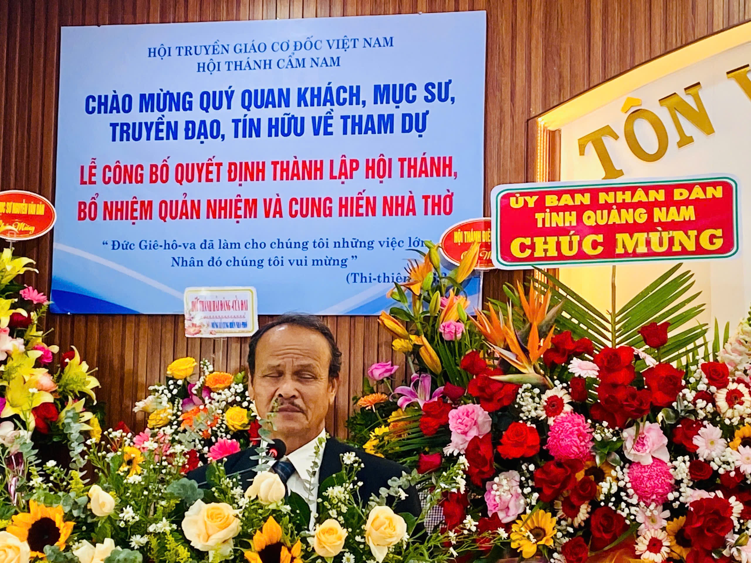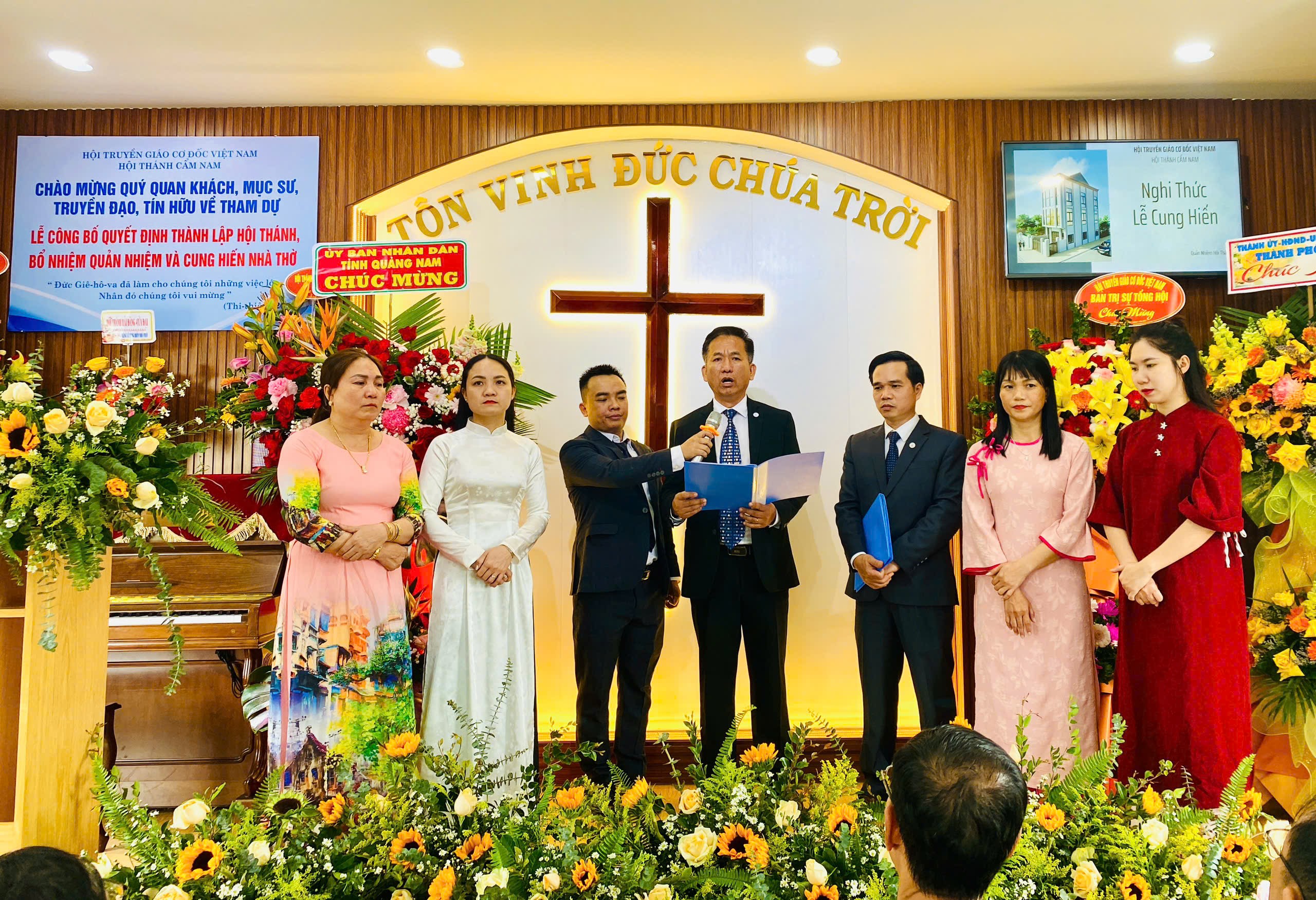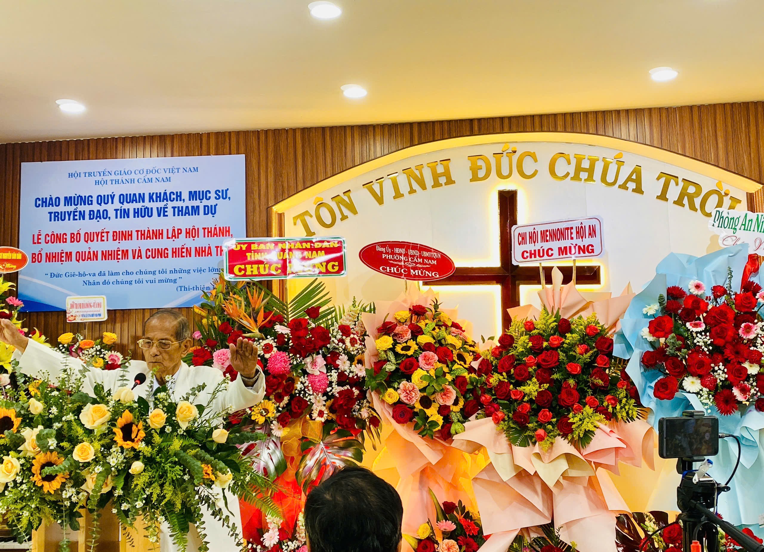 Mục sư Nguyễn Quang Đức – Hội trưởng HTGCĐVN đọc và trao quyết định thành lập Hội thánh Cẩm Nam và Bổ nhiệm Mục sư Nguyễn Lập Đông Quản nhiệm Hội thánh.