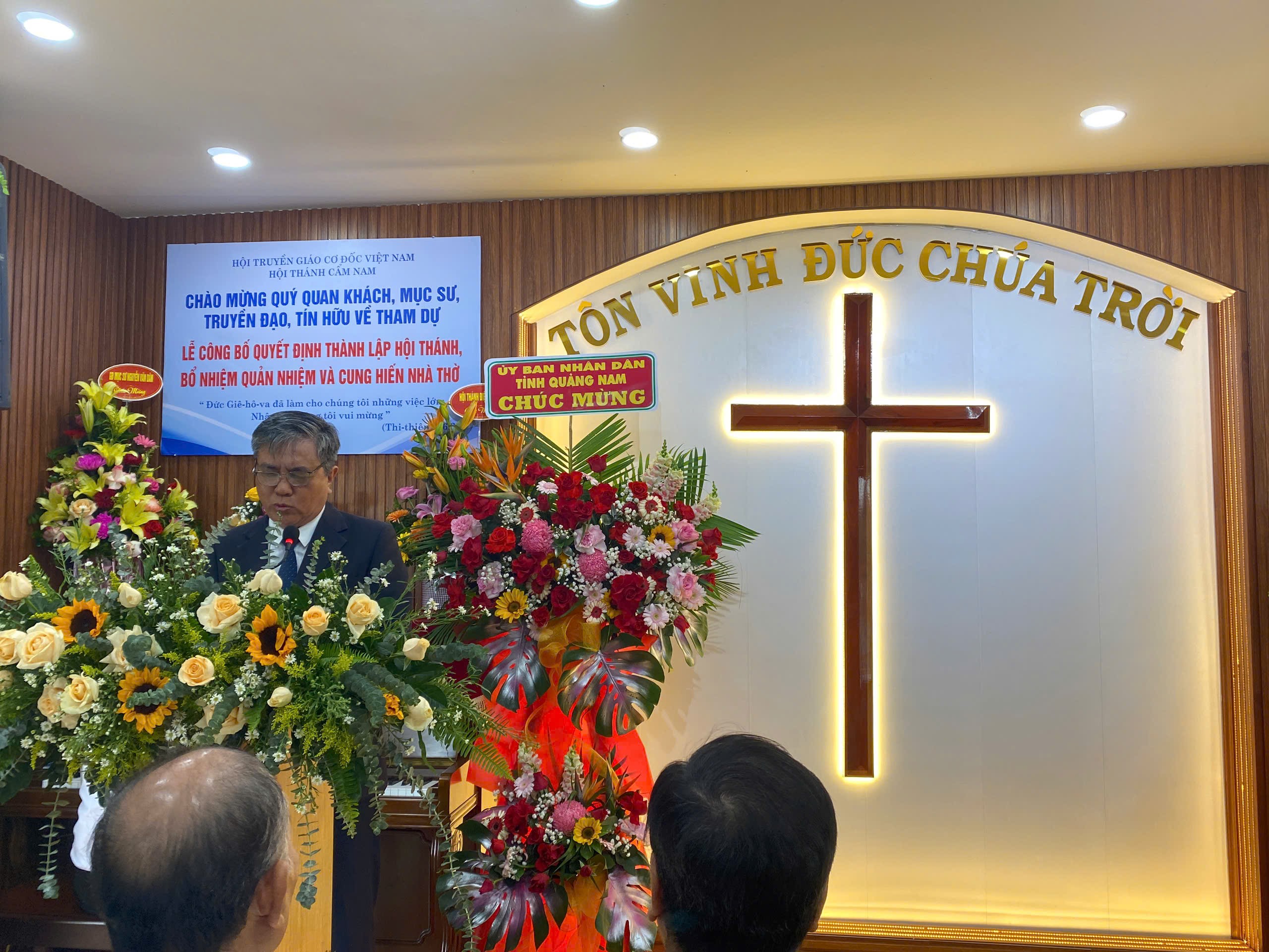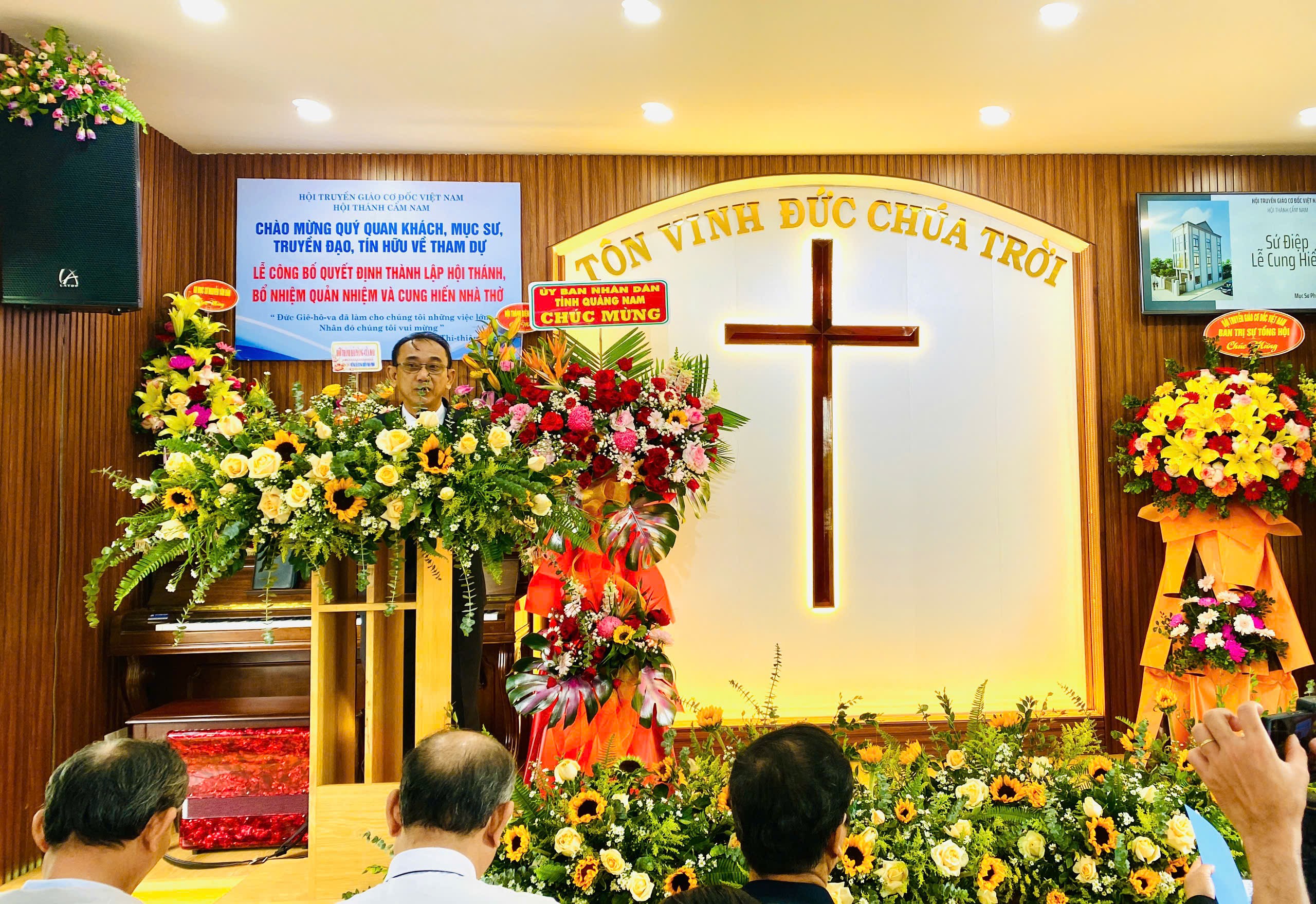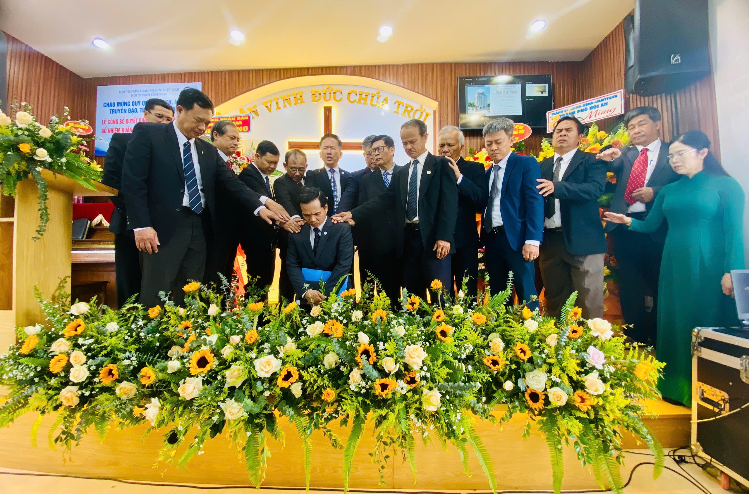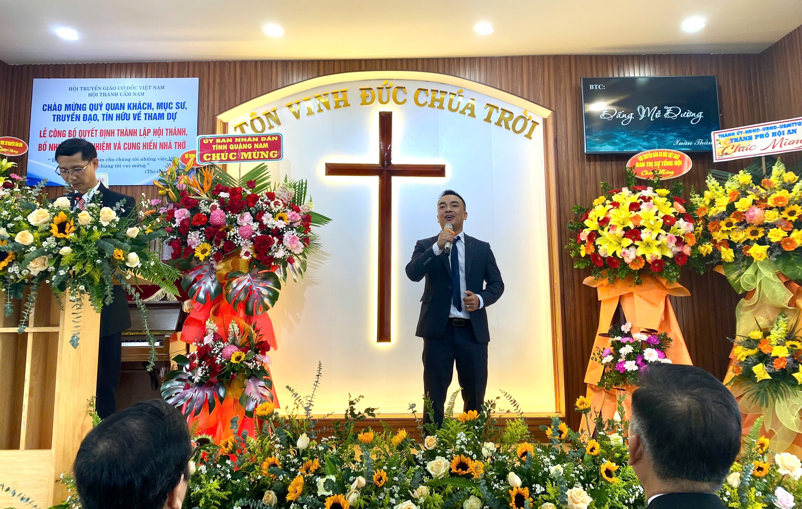 Mục sư Nguyễn Quang Đức – Hội trưởng HTGCĐVN đọc và trao quyết định thành lập Hội thánh Cẩm Nam và Bổ nhiệm Mục sư Nguyễn Lập Đông Quản nhiệm Hội thánh.