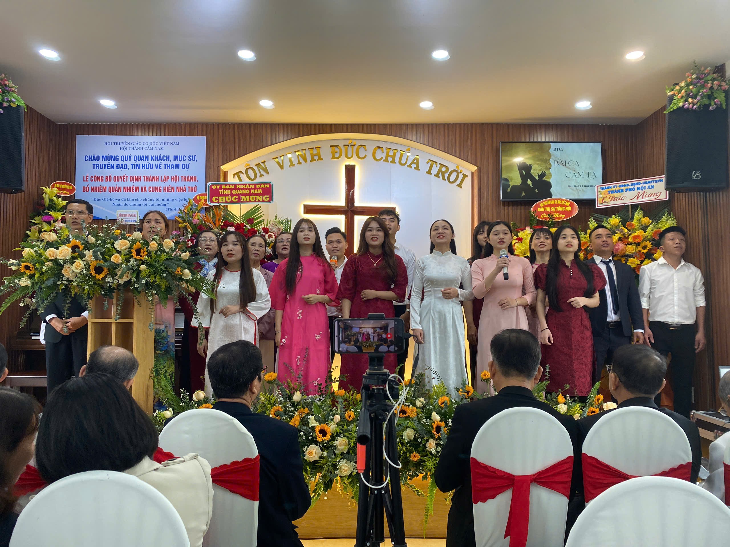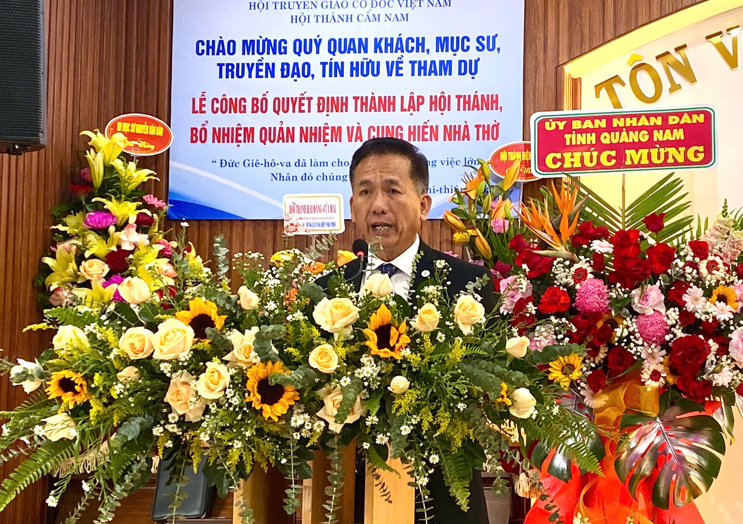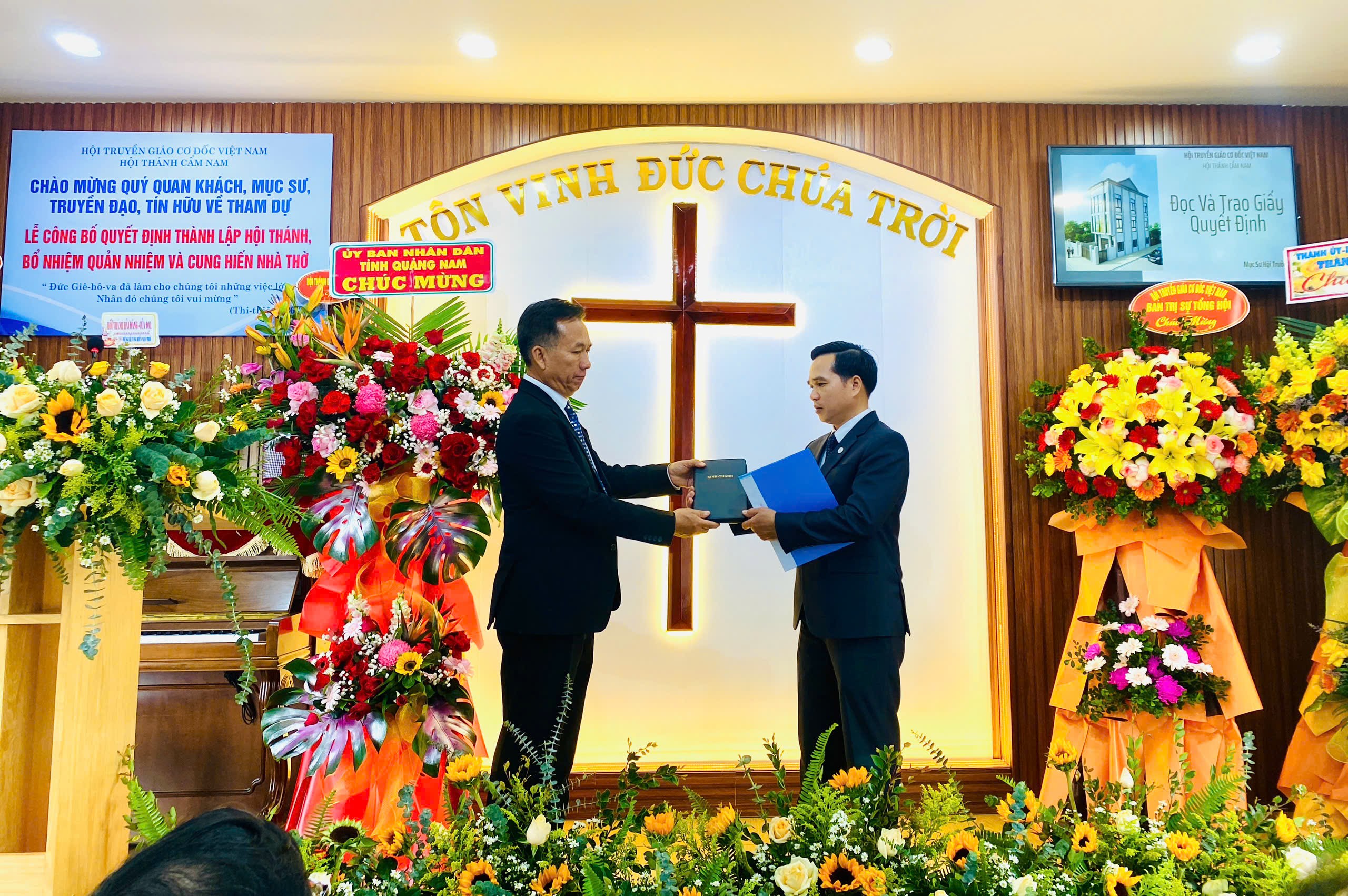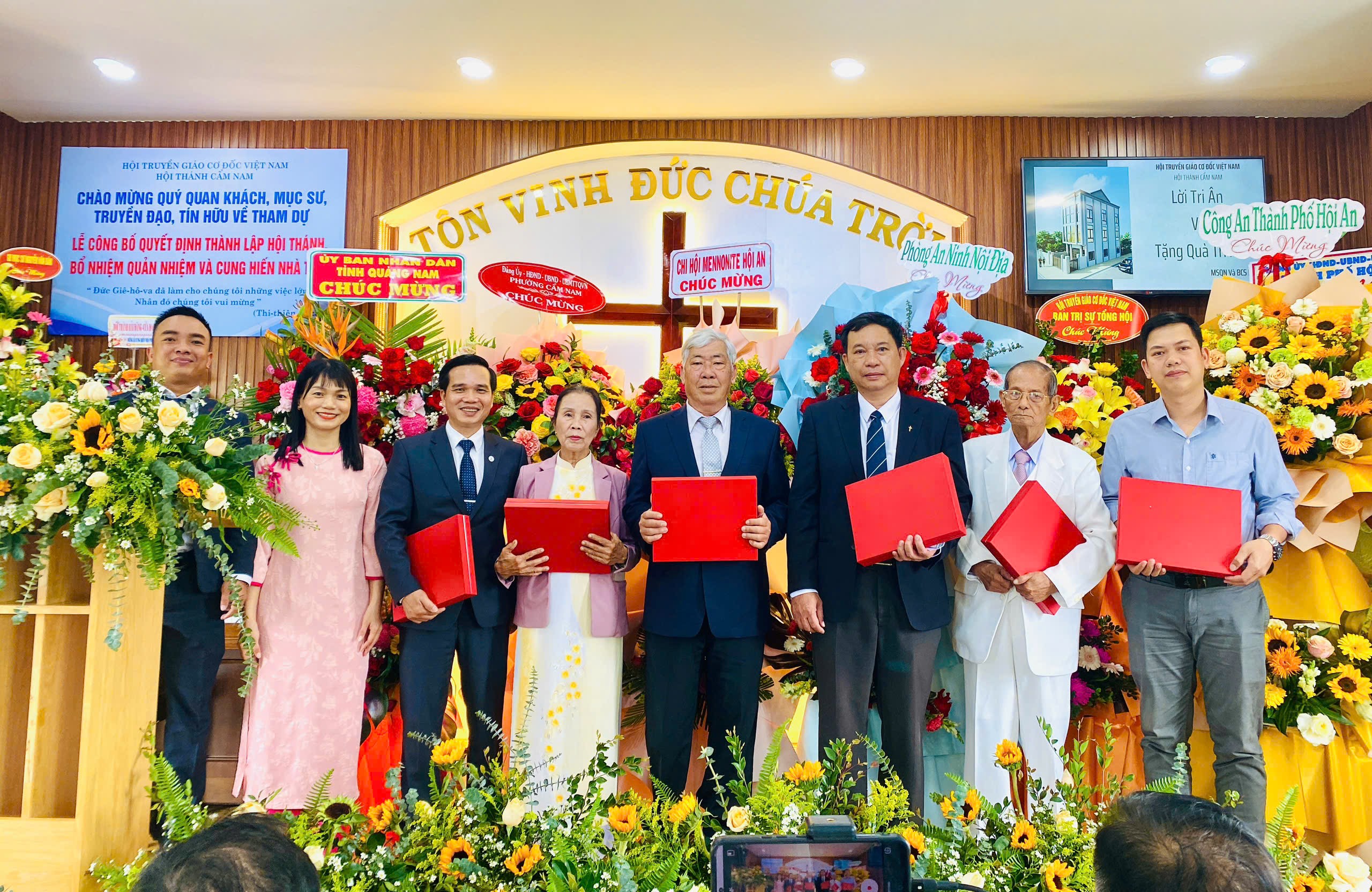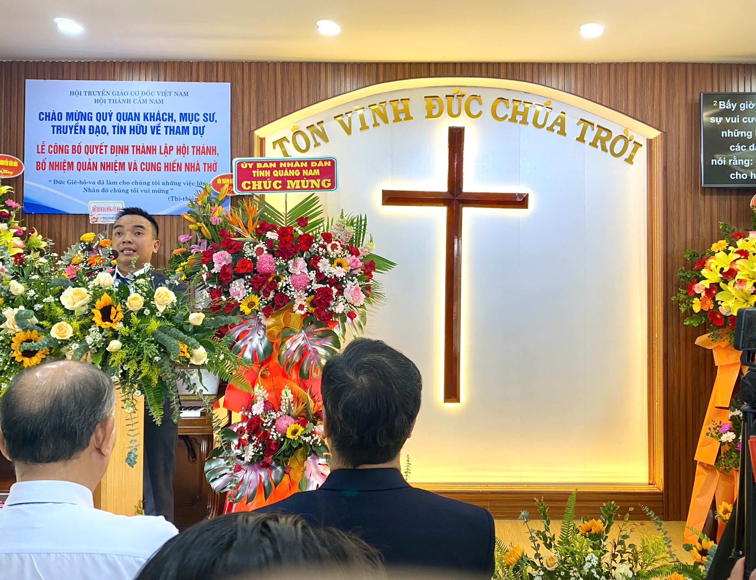 Mục sư Nguyễn Quang Đức – Hội trưởng HTGCĐVN đọc và trao quyết định thành lập Hội thánh Cẩm Nam và Bổ nhiệm Mục sư Nguyễn Lập Đông Quản nhiệm Hội thánh.