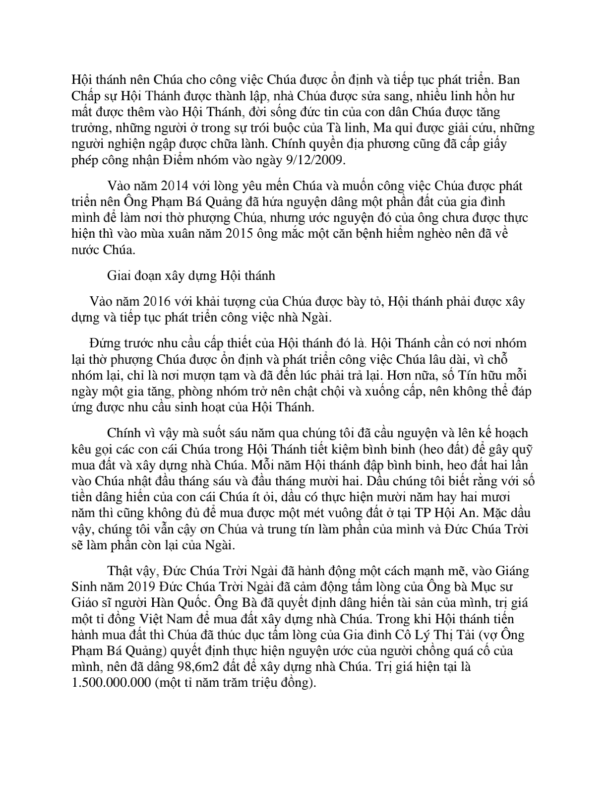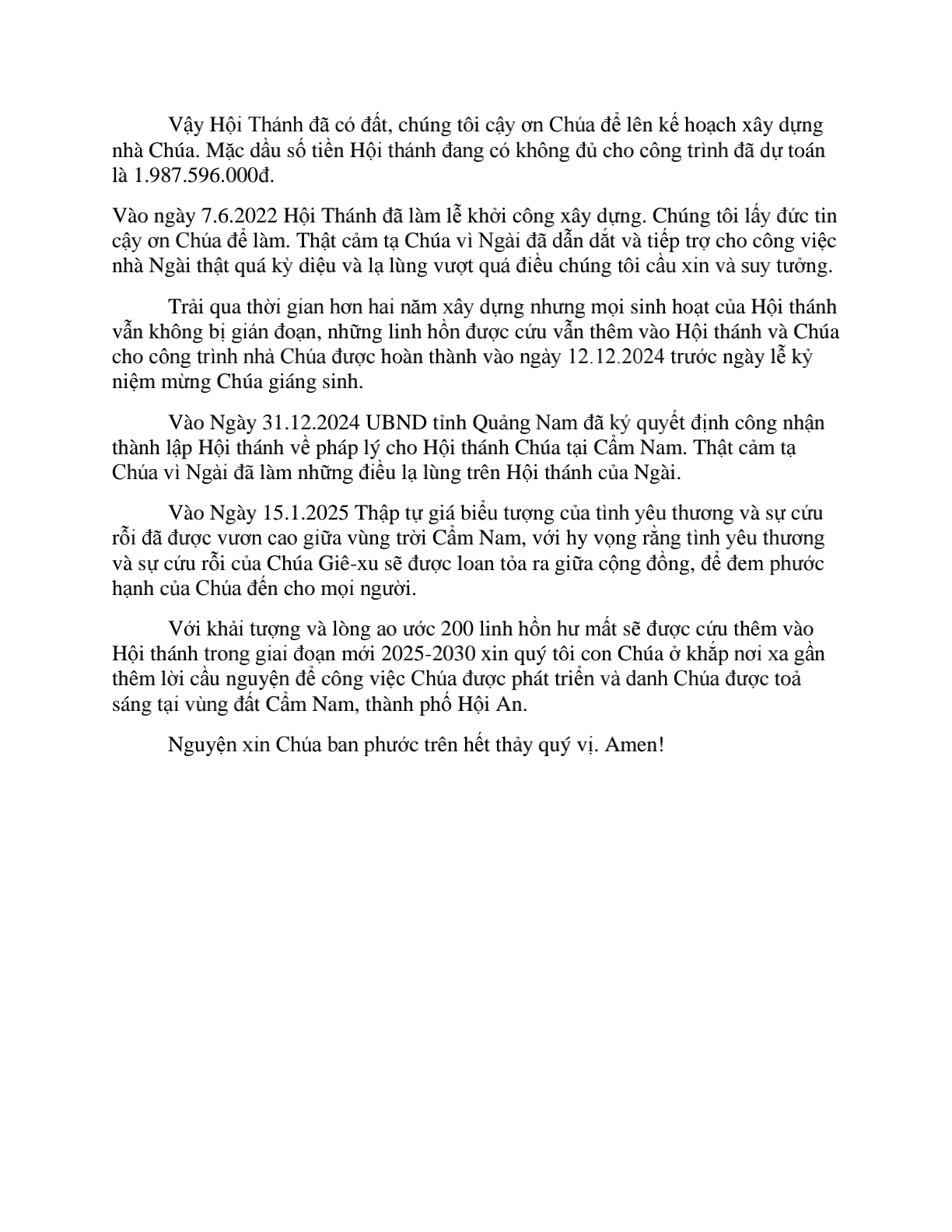 Xin quý tôi con Chúa nhớ đến Hội thánh Cẩm Nam và Ông bà Mục sư Nguyễn Lập Đông trong sự cầu thay để Hội thánh ngày càng phát triển, danh Chúa được vinh hiển tại vùng đất Hội An.