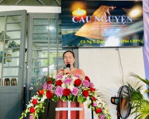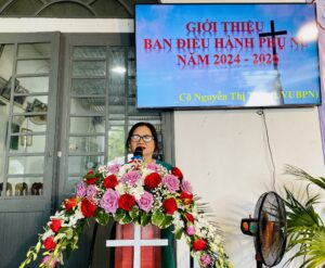 Cô Nguyễn Thị Tám, Ủy viên UBPN giới thiệu BĐH PN tỉnh Quảng Ngãi nhiệm kỳ 2024 – 2026 và cầu nguyện cho BĐH là Mục sư Nguyễn Thanh, UVMV tỉnh