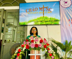 Cô Nguyễn Thị Mỹ Ngọc, Trưởng BĐH tỉnh tri ân diễn giả, khách mời và Hội thánh