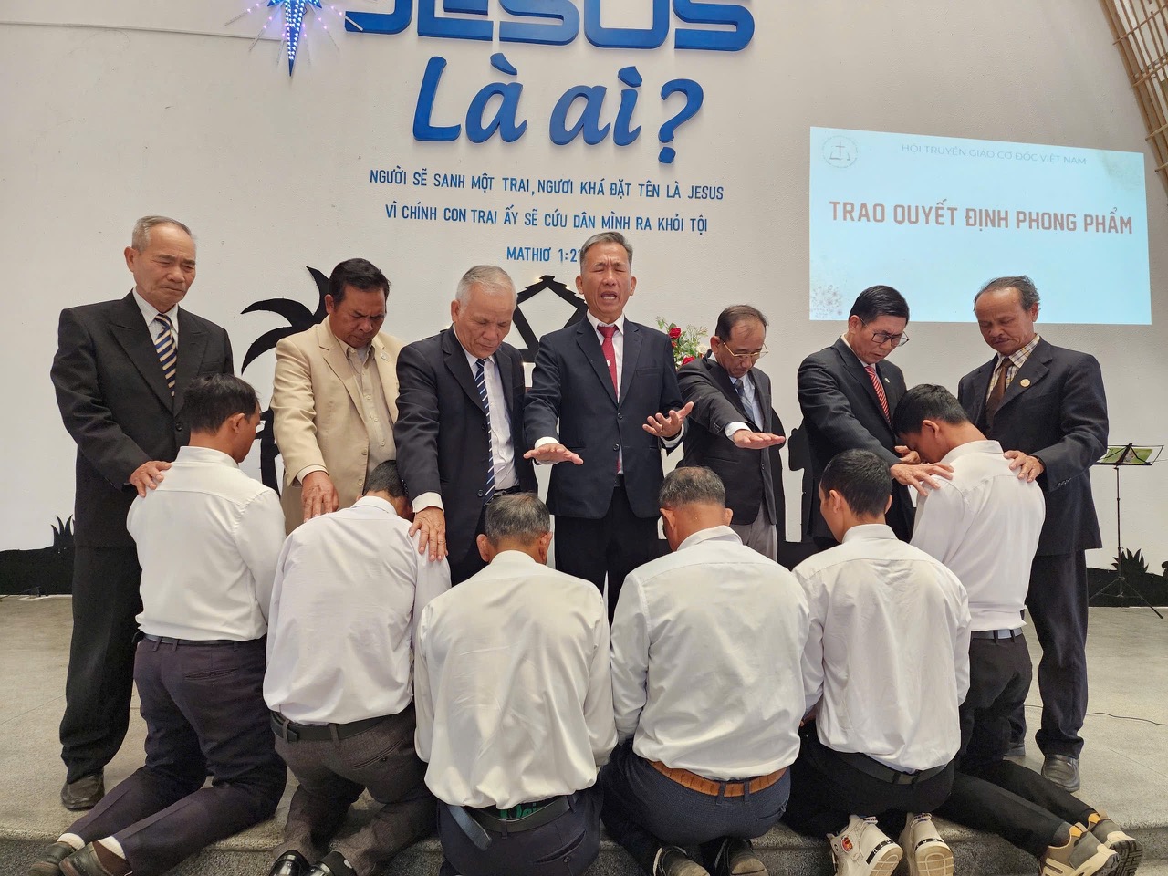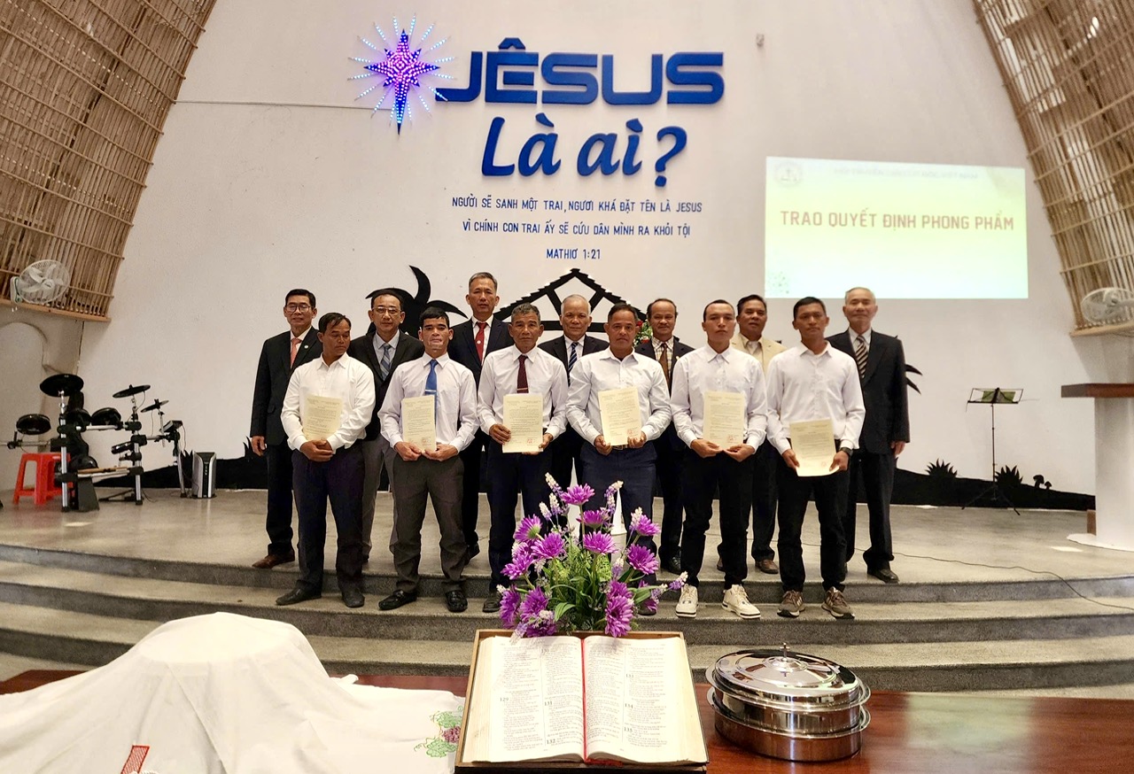 Mục sư Nguyễn Quang Đức trao quyết định phong phẩm cho 06 Truyền đạo