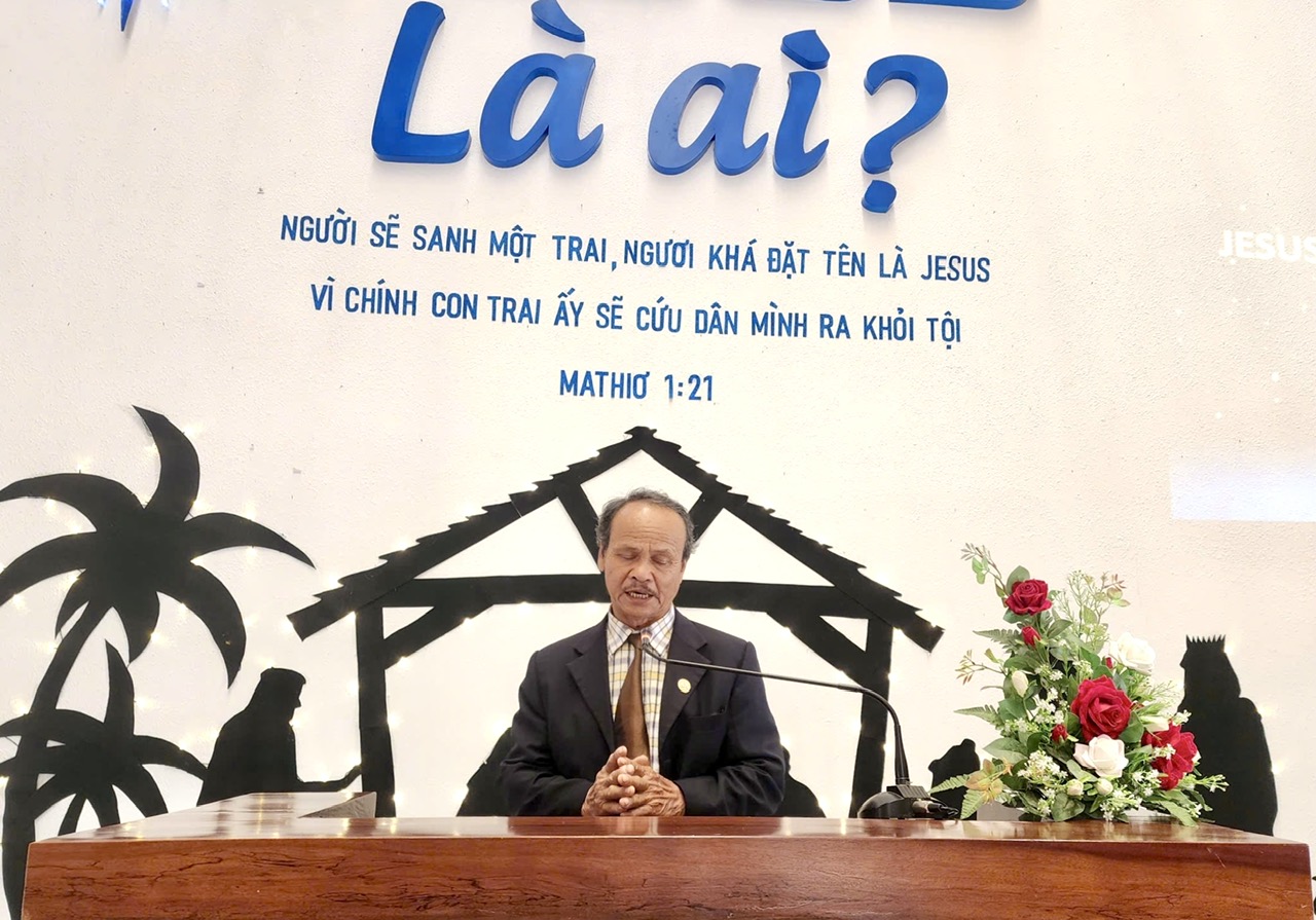 Mục sư Trần Thảo, nguyên Hội phó HTGCĐVN cầu nguyện đáp ứng Lời Chúa