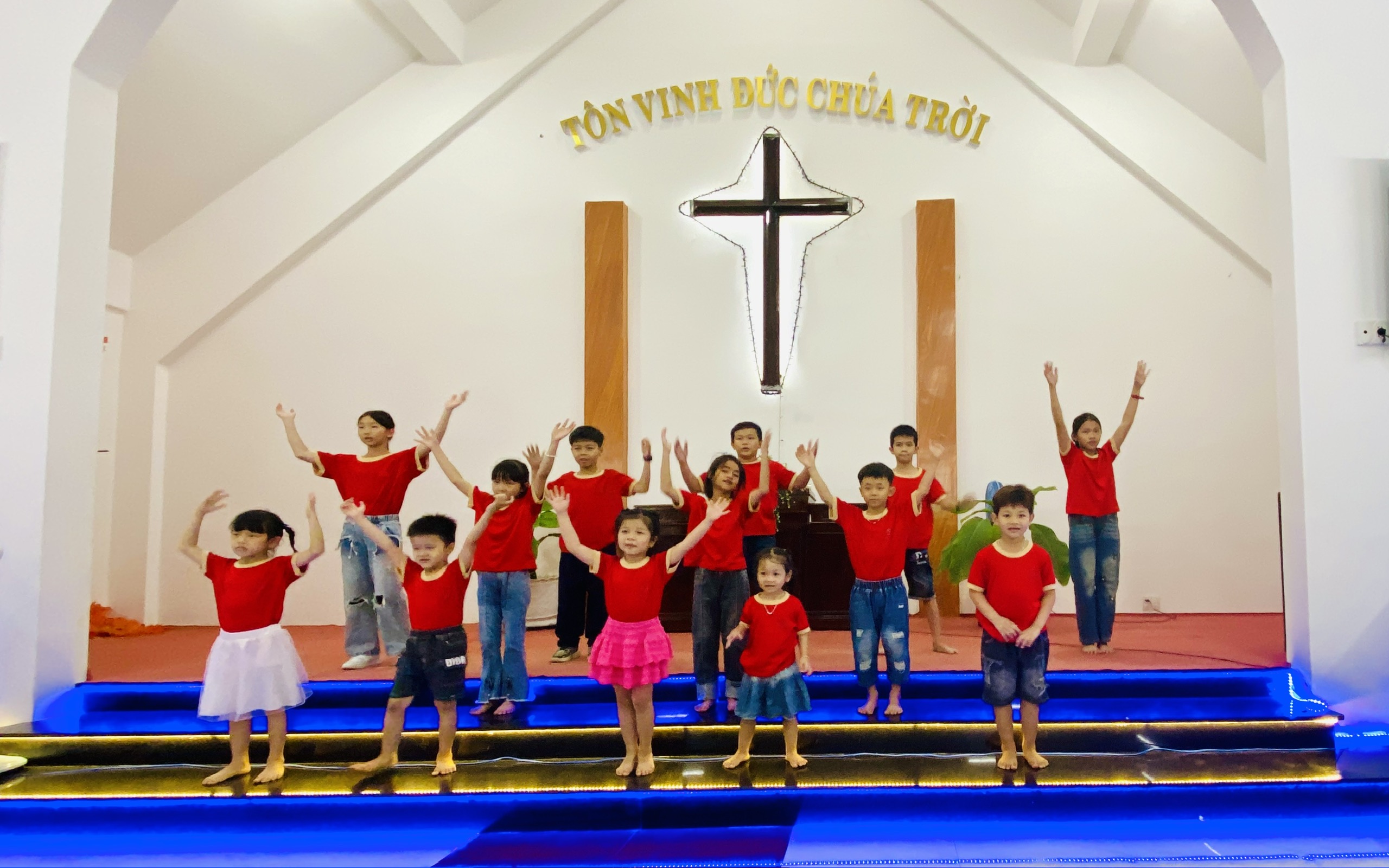 Ban Thiếu niên và Ban Ấu nhi Hội thánh Lý Sơn nhảy múa ngợi khen Chúa