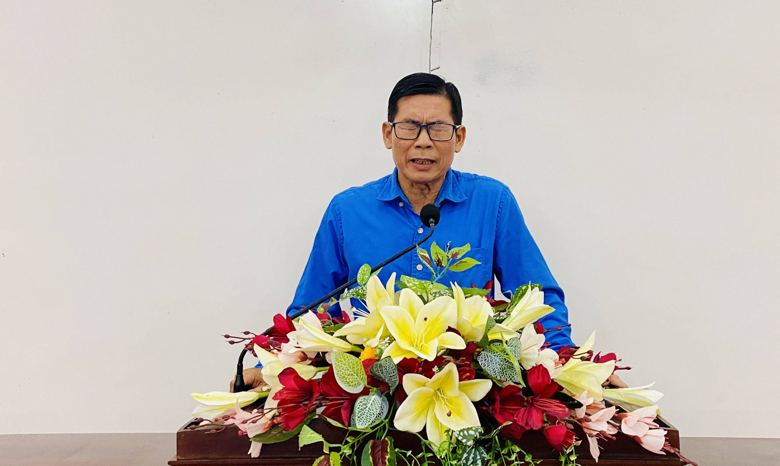 Mục sư Nguyễn Thanh, Ủy viên BTS TH – Mục vụ tỉnh Quảng Ngãi cầu nguyện dâng thì giờ Hiệp nguyện lên cho Ba Ngôi Đức Chúa Trời