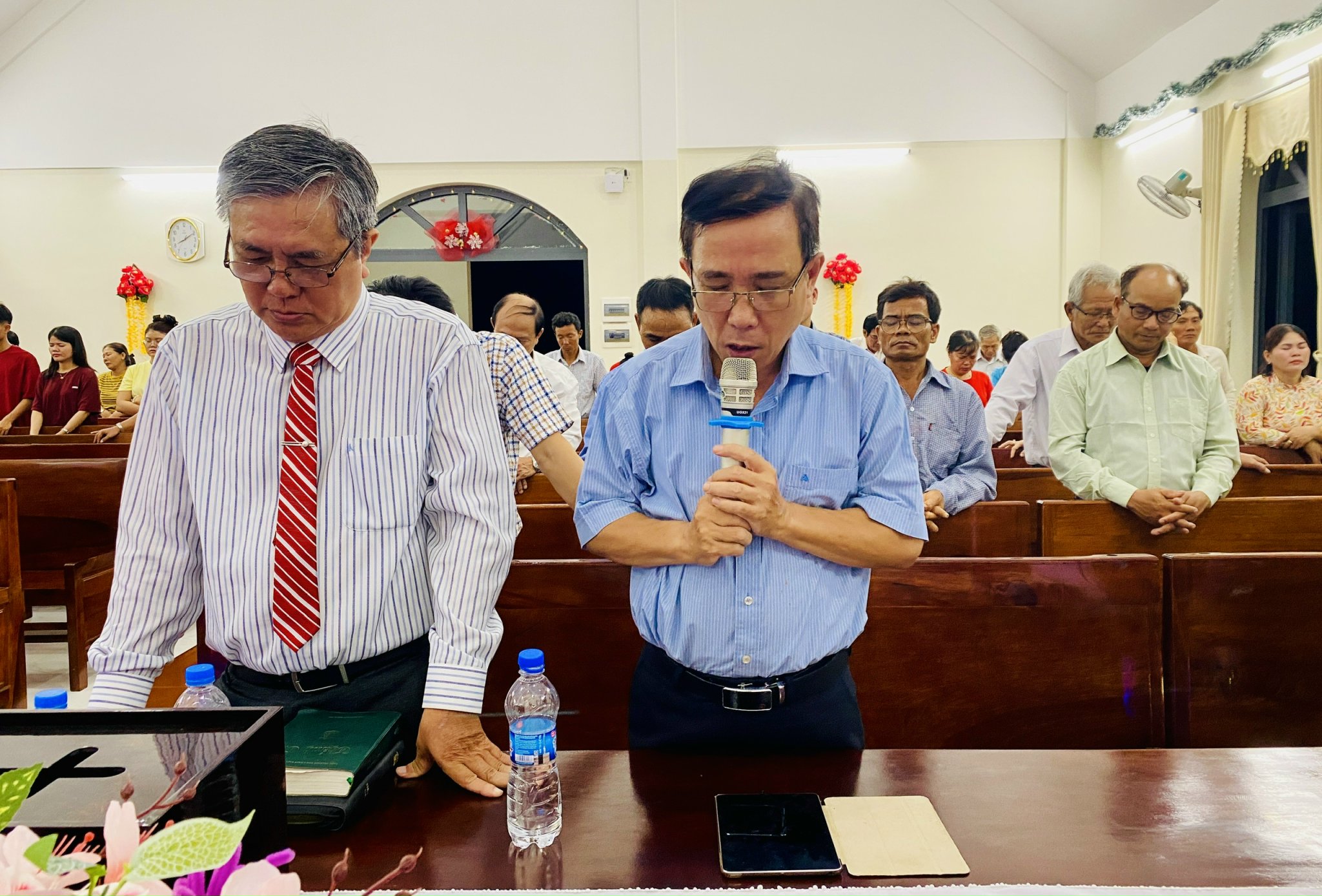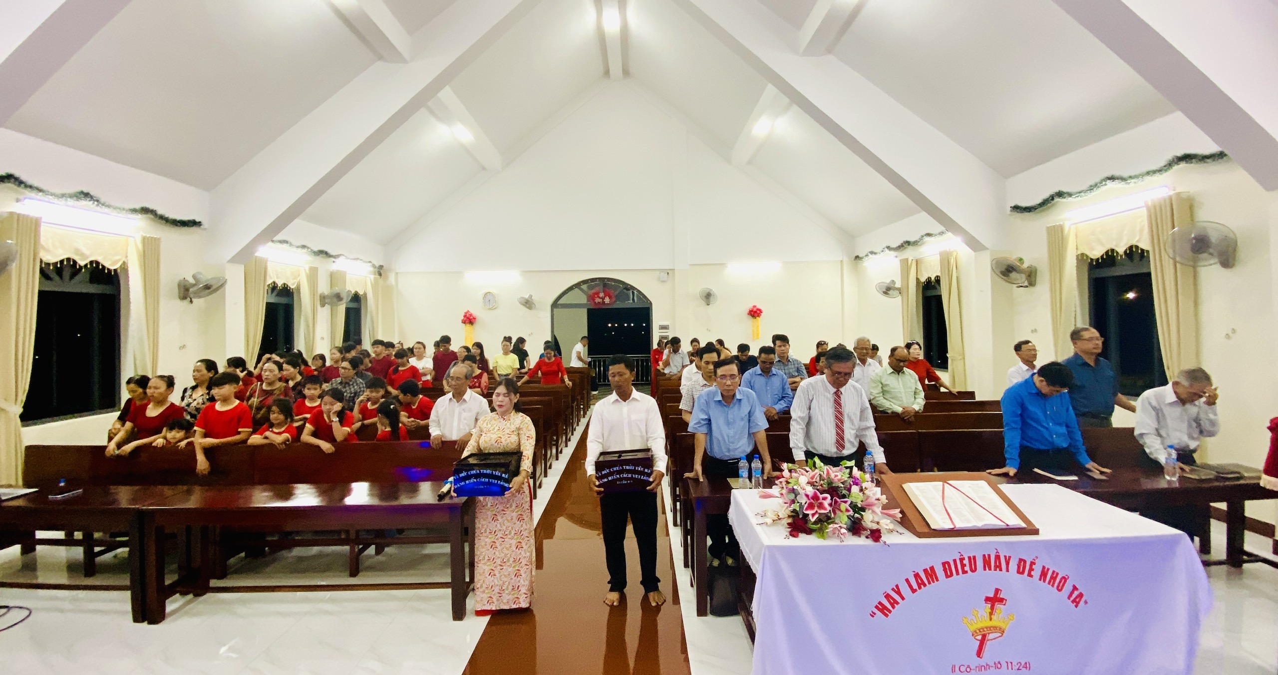 Chấp sự Nguyễn Văn Thiện cầu nguyện cho số tiền dâng