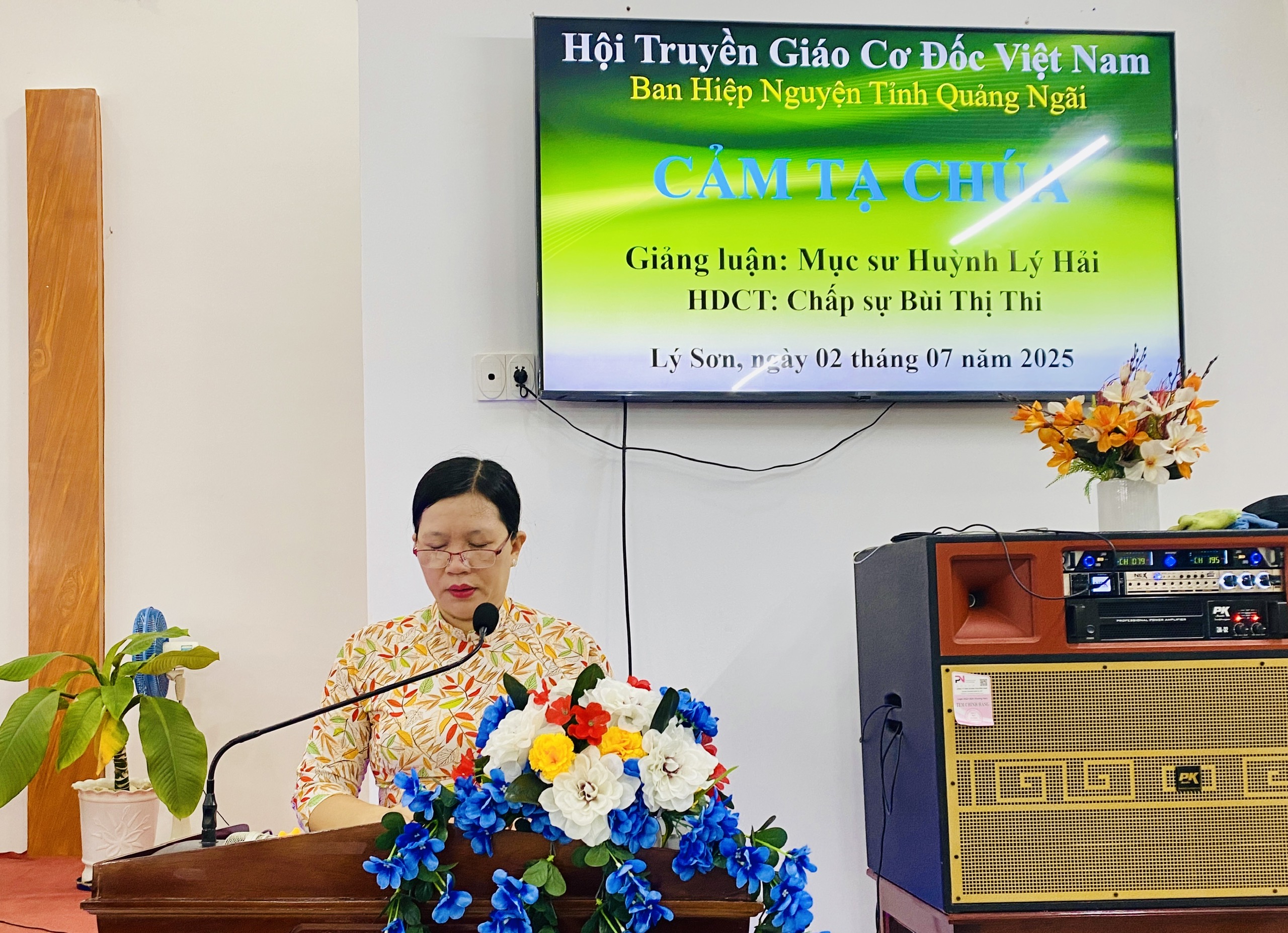 Chấp sự Bùi Thị Thi – Thủ quỹ Hội thánh Lý Sơn hướng dẫn chương trình