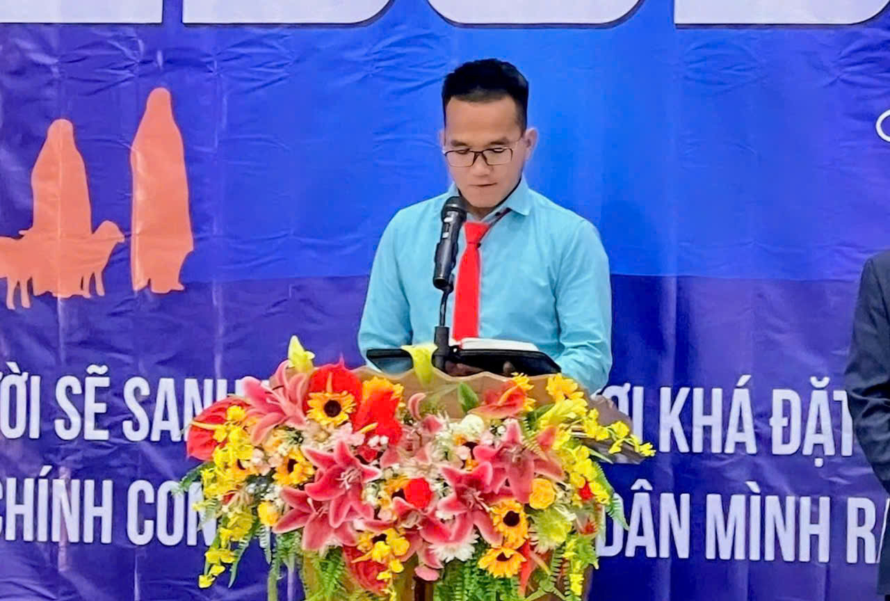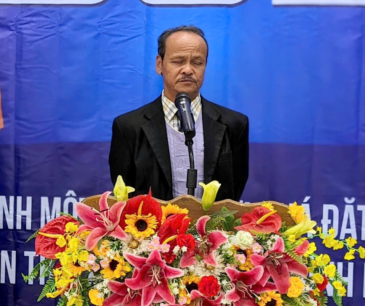 Truyền đạo A Đô, thư ký Ban Hiệp nguyện khu vực Đăk Long làm chứng về những ơn phước mà Chúa ban cho các Hội thánh khu vực xã Đăk Long