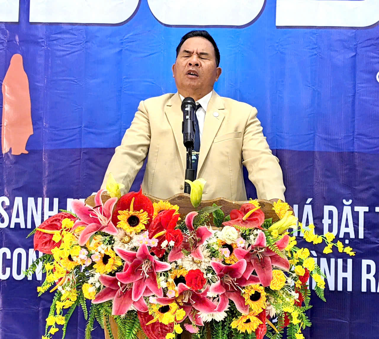 Mục sư A Xôn, Trưởng Ban Điều hành Hiệp nguyện khu vực xã Đăk Long bày tỏ lòng tri ân quý đầy tớ Chúa và quý khách mời tham dự