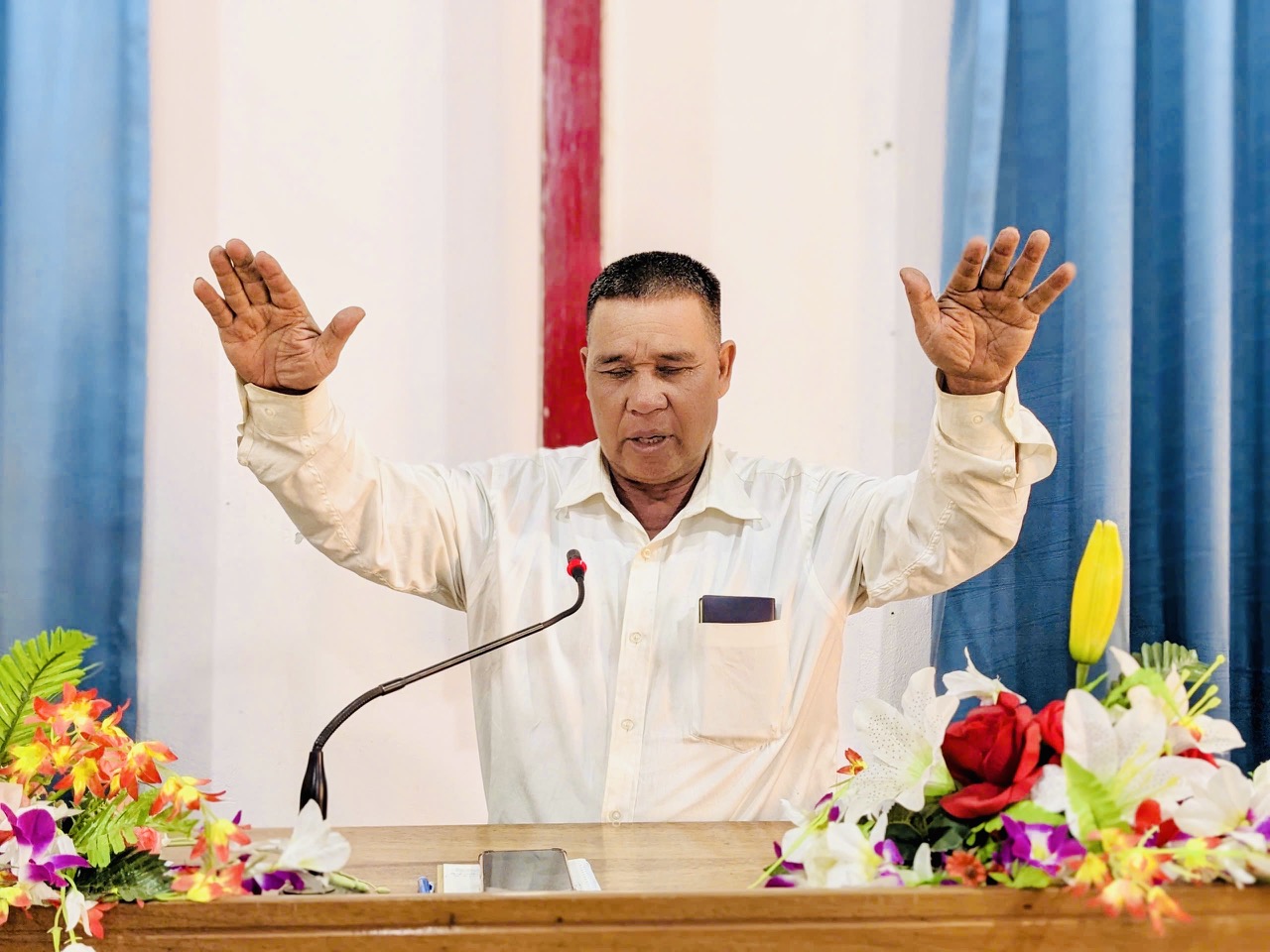 Mục sư A Son cầu nguyện dâng thì giờ lên cho Ba Ngôi Đức Chúa Trời