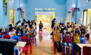 Các em Thiếu nhi cùng nhau sinh hoạt và nhận quà