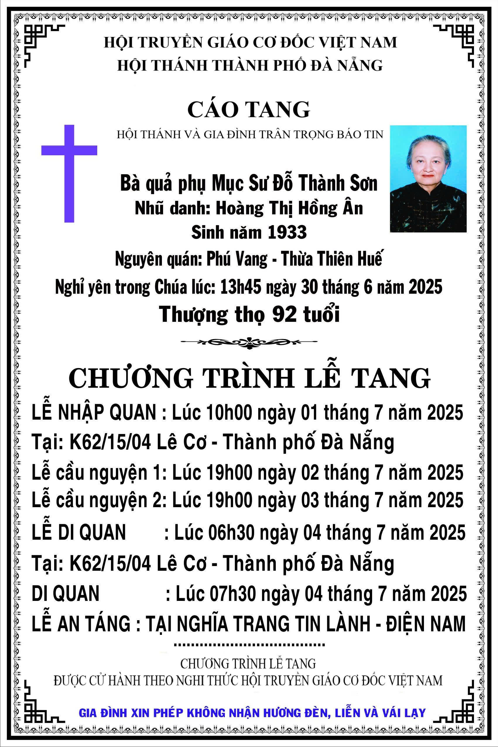 Hội Thánh Thành Phố Đà Nẵng – Cùng Gia Đình Kính Báo: