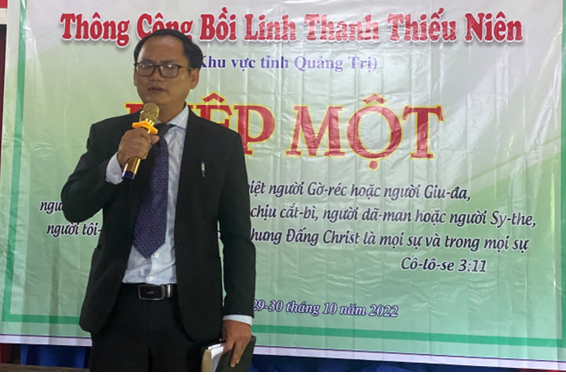 Vào lúc 13h30 ngày 29-30 tháng 10 năm 2022, được sự cho phép của Ban Trị Sự Tổng Hội và Mục sư Lương Anh Toàn – Ủy viên Mục vụ Tỉnh Quảng Trị. Ban Thanh niên Hội Thánh Phú Hòa – Đà Nẵng đã cùng tổ chức chương trình “THÔNG CÔNG BỒI LINH THANH THIẾU NIÊN” với các bạn Thanh Thiếu Niên trong khu vực tỉnh Quảng Trị.