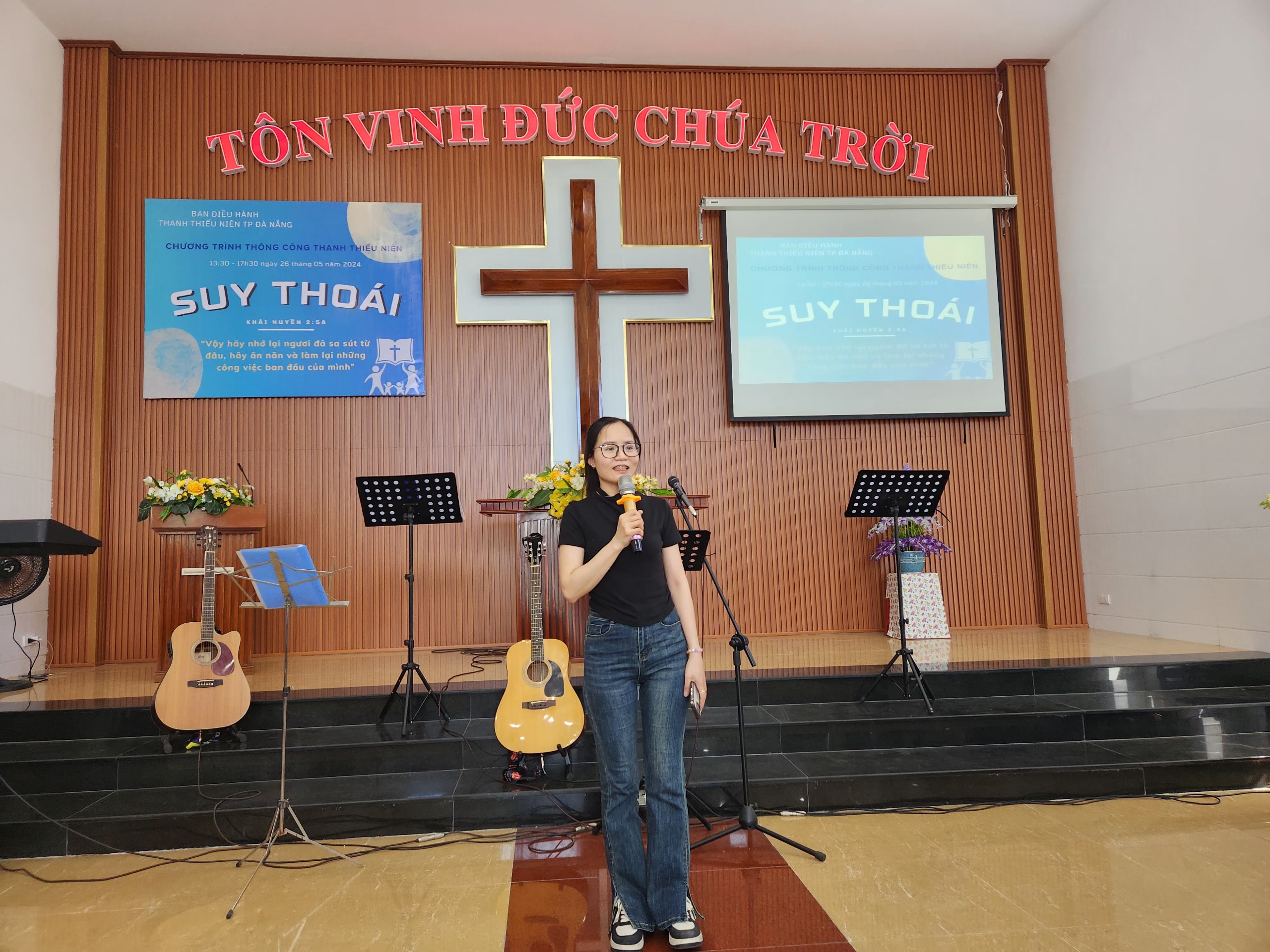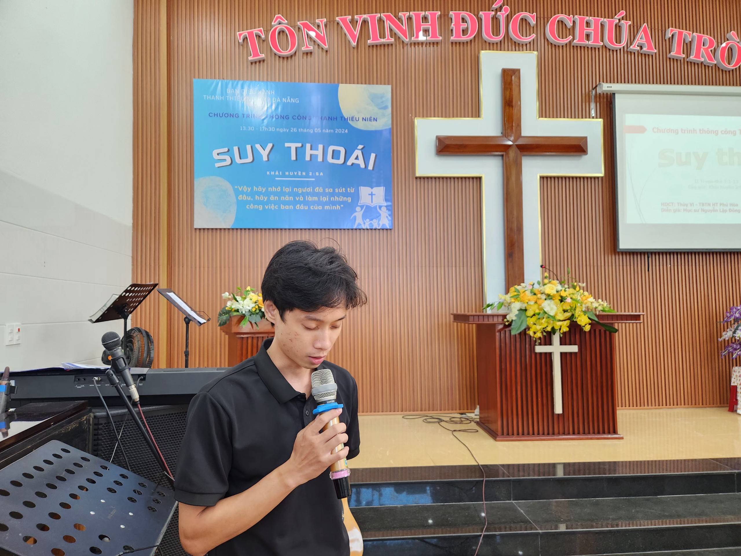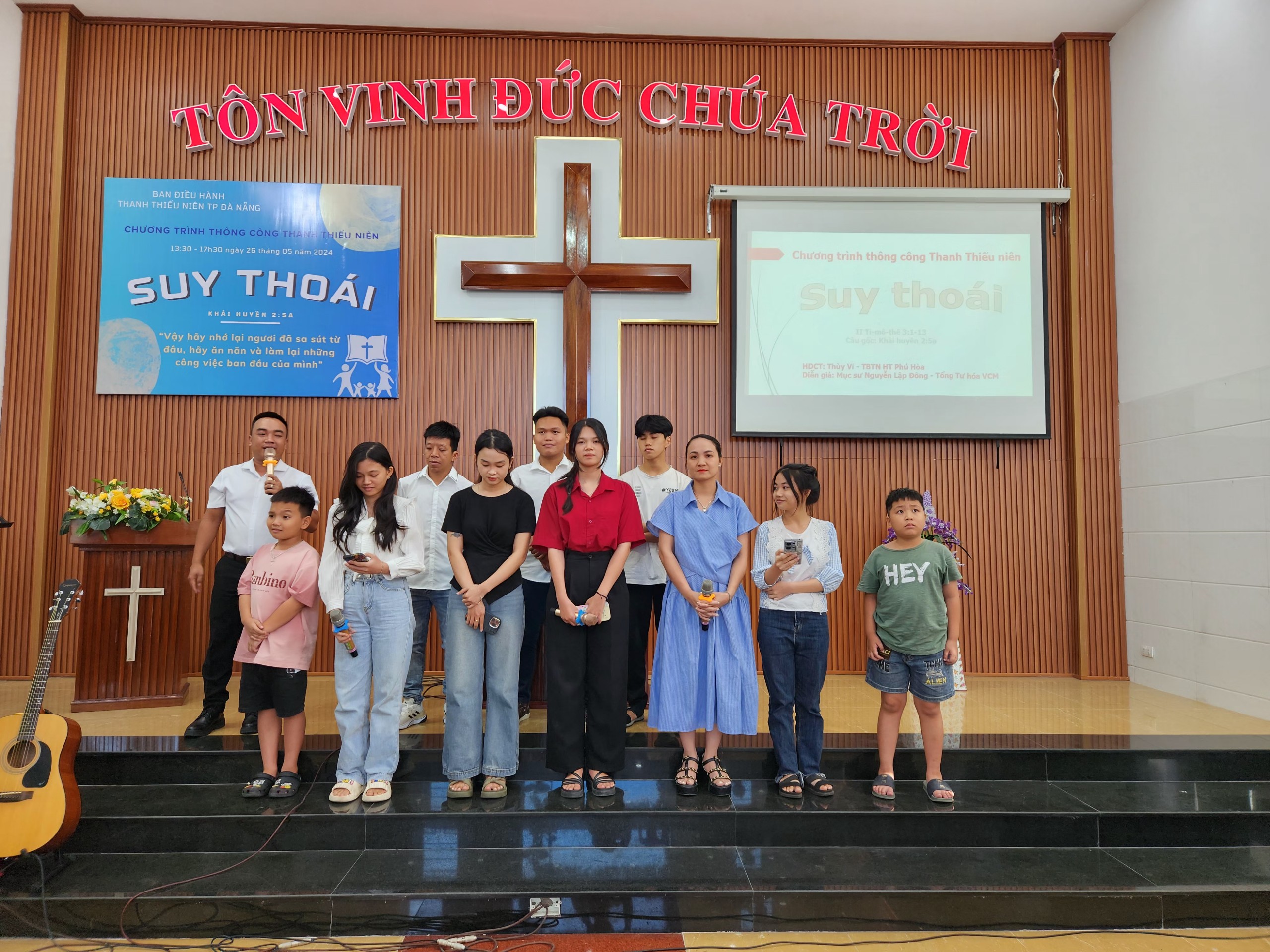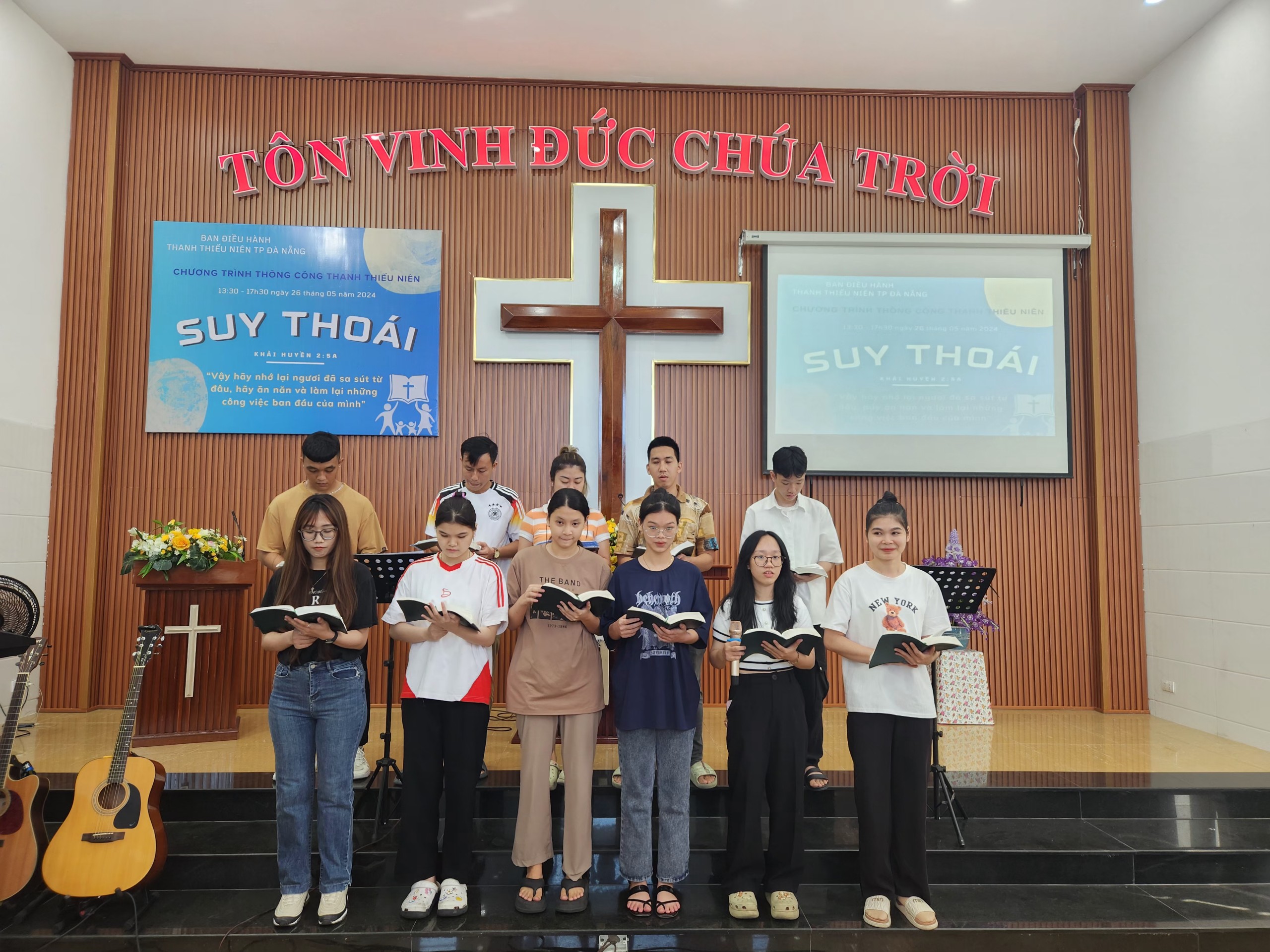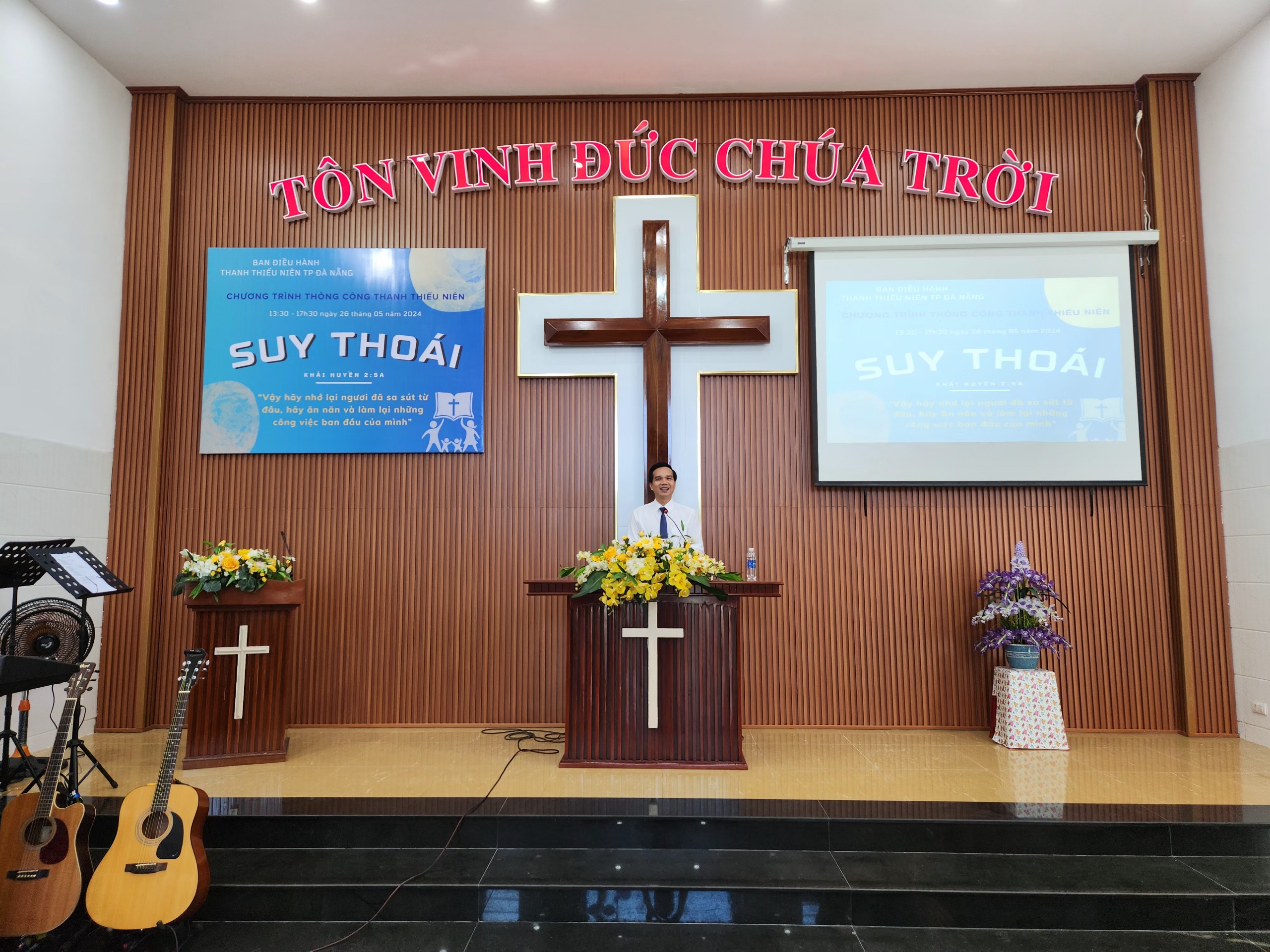 Chương trình do BĐH TTN khu vực TP Đà Nẵng tổ chức với chủ đề “SUY THOÁI” nương trên câu Kinh thánh: Vậy hãy nhớ lại ngươi đã sa sút từ đâu, hãy ăn năn và làm lại những công việc ban đầu của mình; (Khải huyền 2:5a).