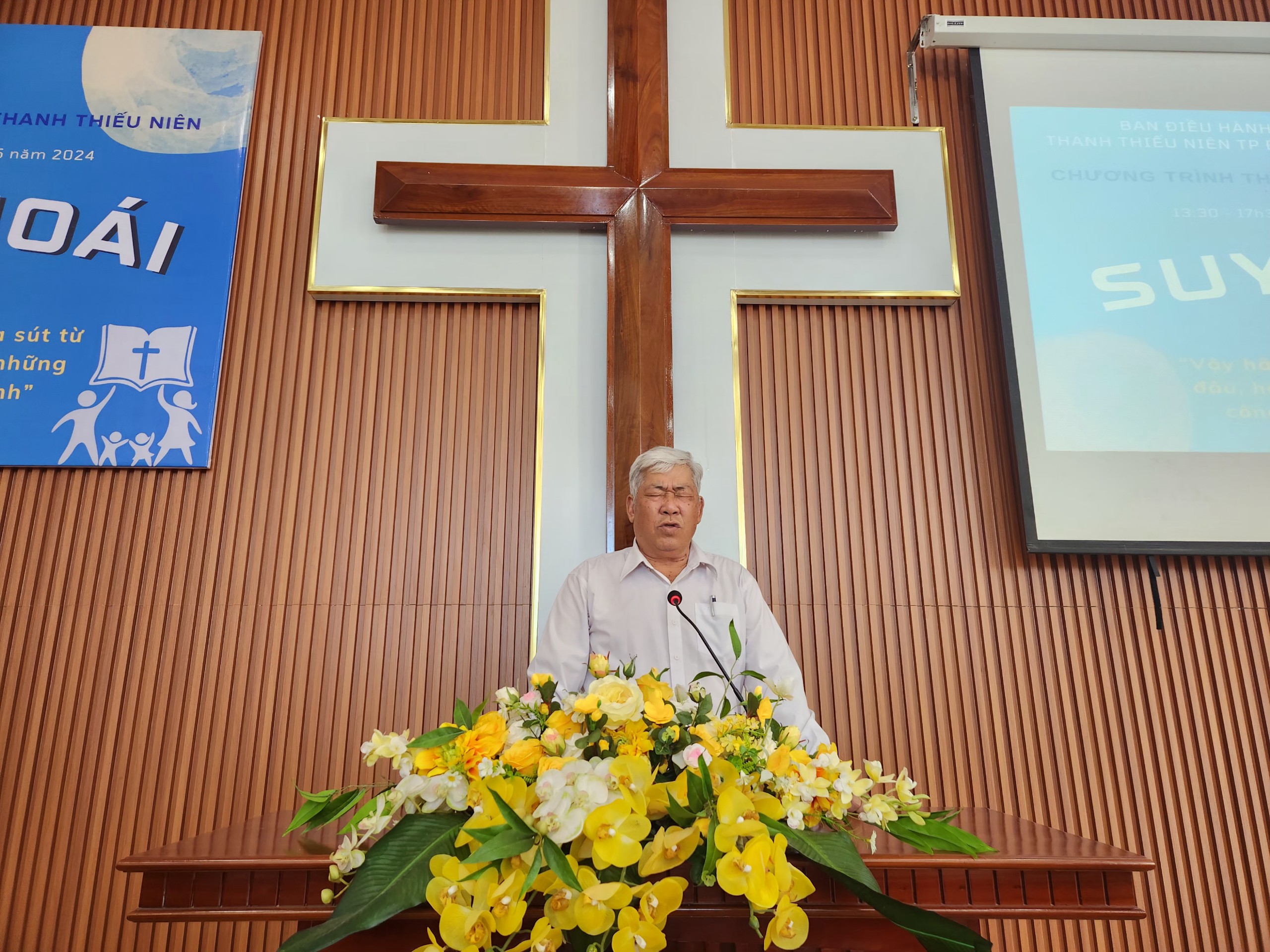 Mục sư Nguyễn Lập Đông – Tổng Tư hóa HTGCĐVN chia sẻ lời Chúa khích lệ các bạn Thanh Thiếu niên trong khu vực.