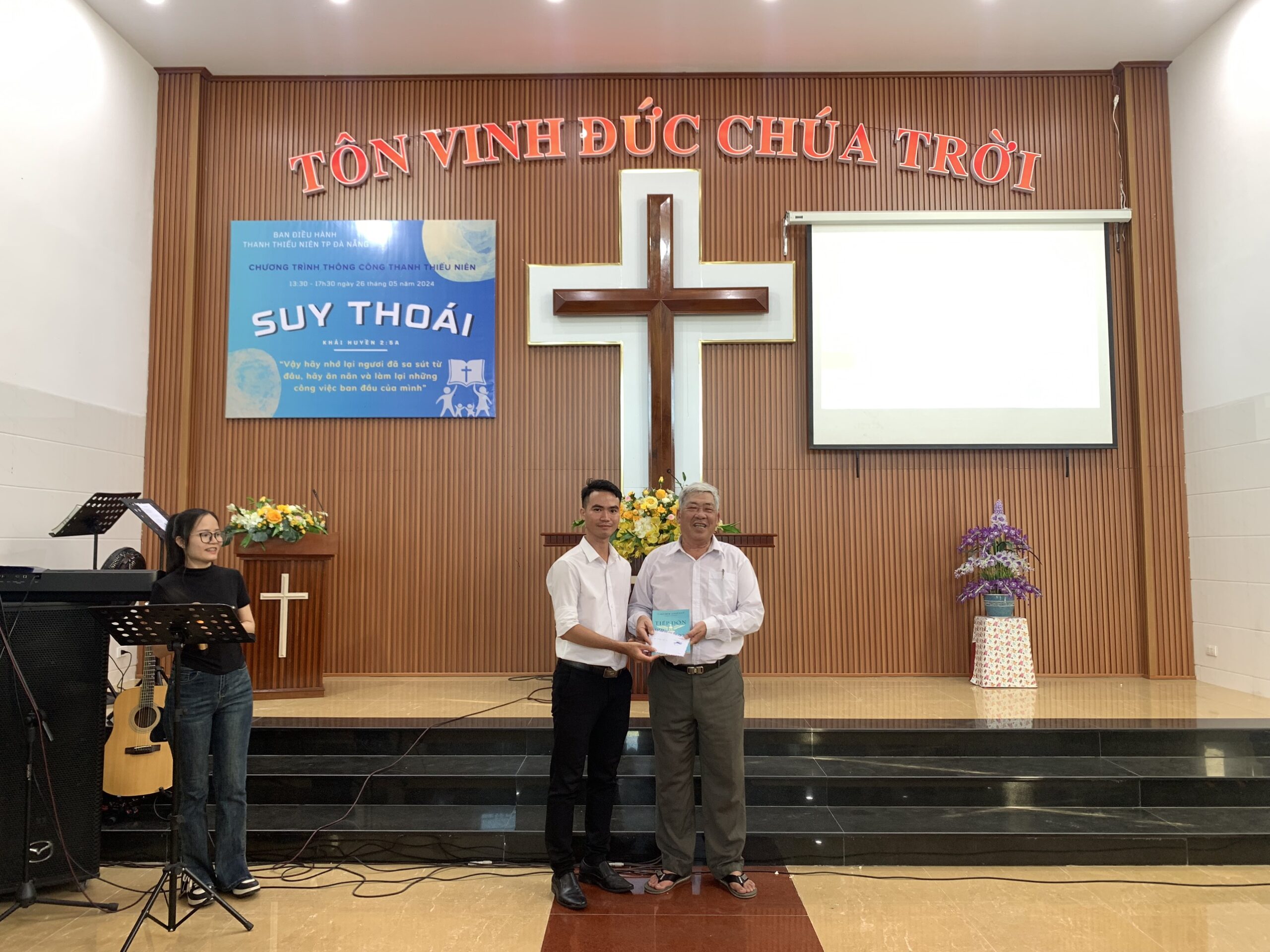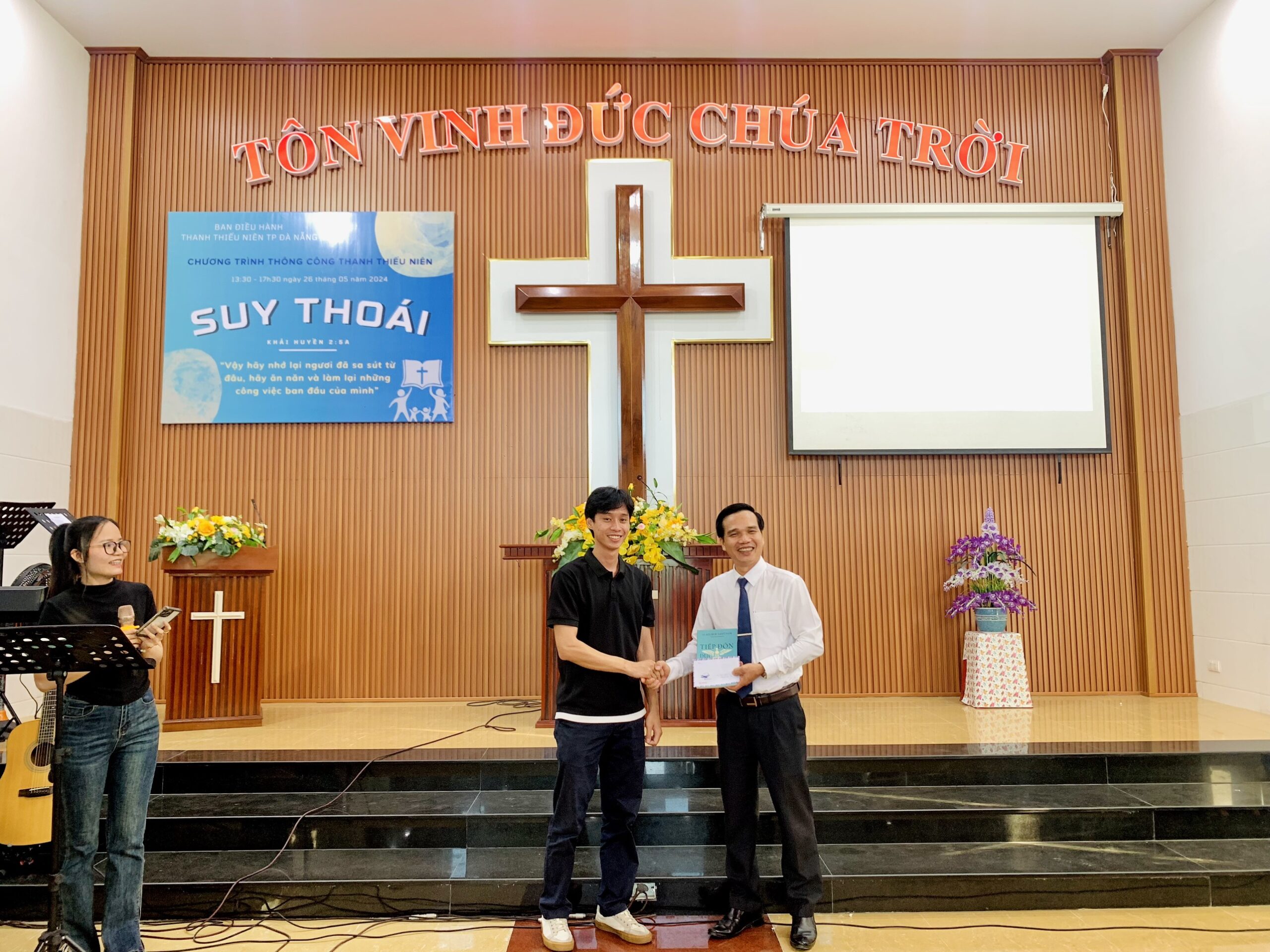 Đỗ Hoàng Thi – Trưởng Ban TTN khu vực TP Đà Nẵng tri ân Mục sư Nguyễn Lập Đông đã nhận lời mời của BĐH TTN TP Đà Nẵng đến tham dự và có lời Chúa chia sẻ khích lệ các bạn trẻ.